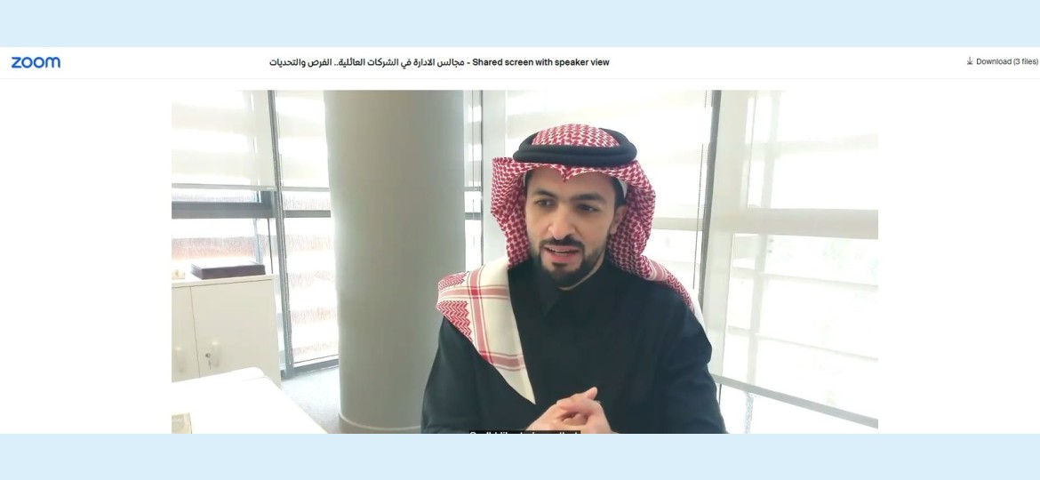 نظمت غرفة الشرقية ممثلة بمركز الاستثمار والدراسات ورشة عمل افتراضية بعنوان "مجالس الادارة في الشركات العائلية.. الفرص والتحديات" تحدث فيها القانوني والمستشار في الحوكمة أنس العسافي.