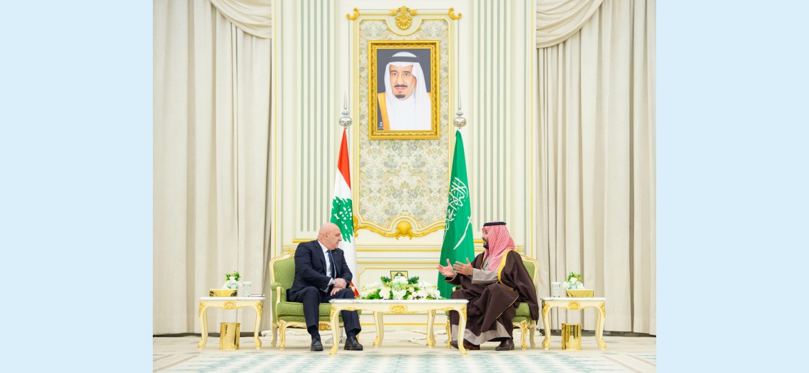 استقبل صاحب السمو الملكي الأمير محمد بن سلمان بن عبدالعزيز آل سعود، ولي العهد رئيس مجلس الوزراء، في الديوان الملكي بقصر اليمامة في الرياض، أمس الاثنين، فخامة الرئيس جوزيف عون رئيس الجمهورية اللبنانية.