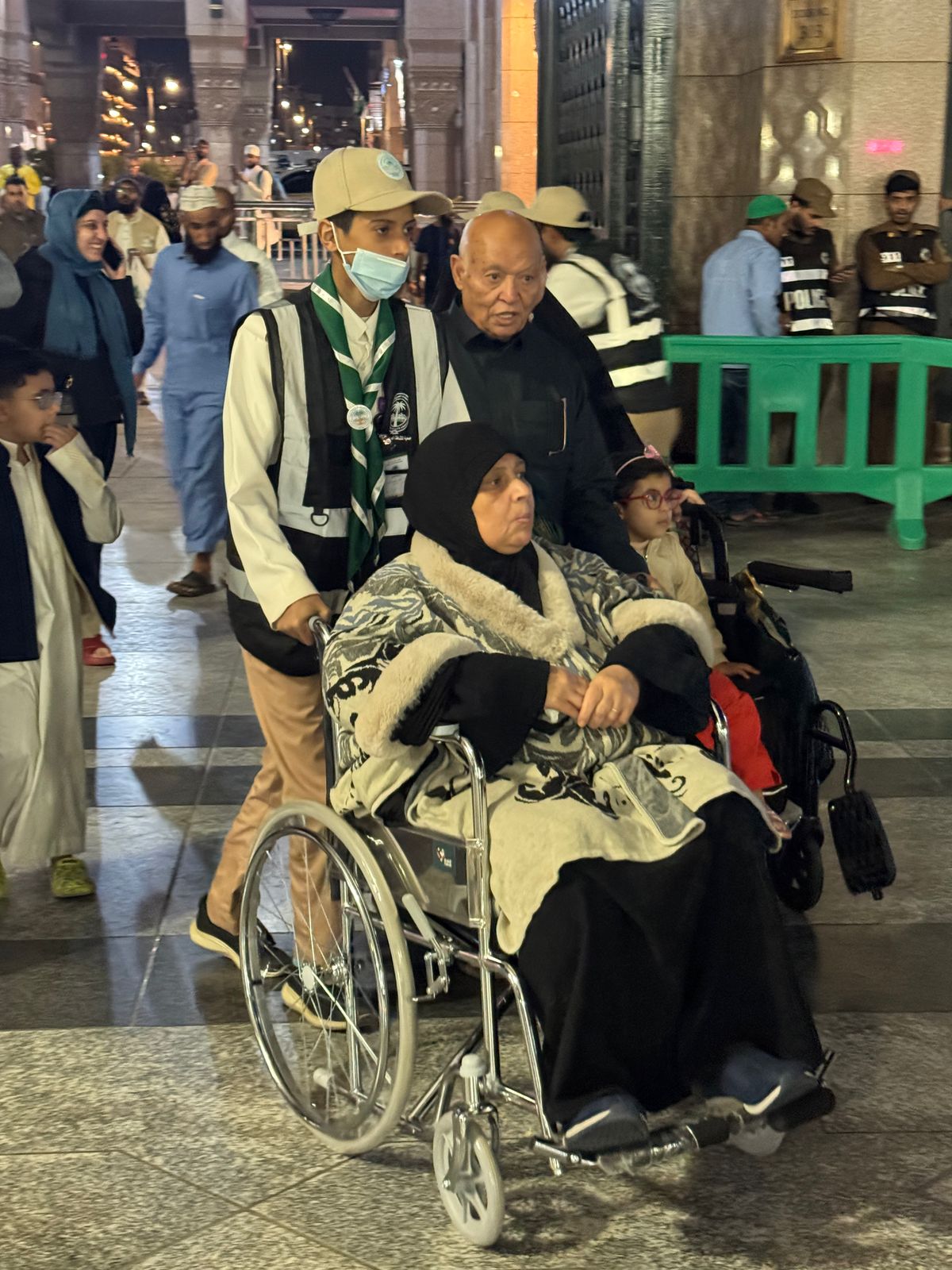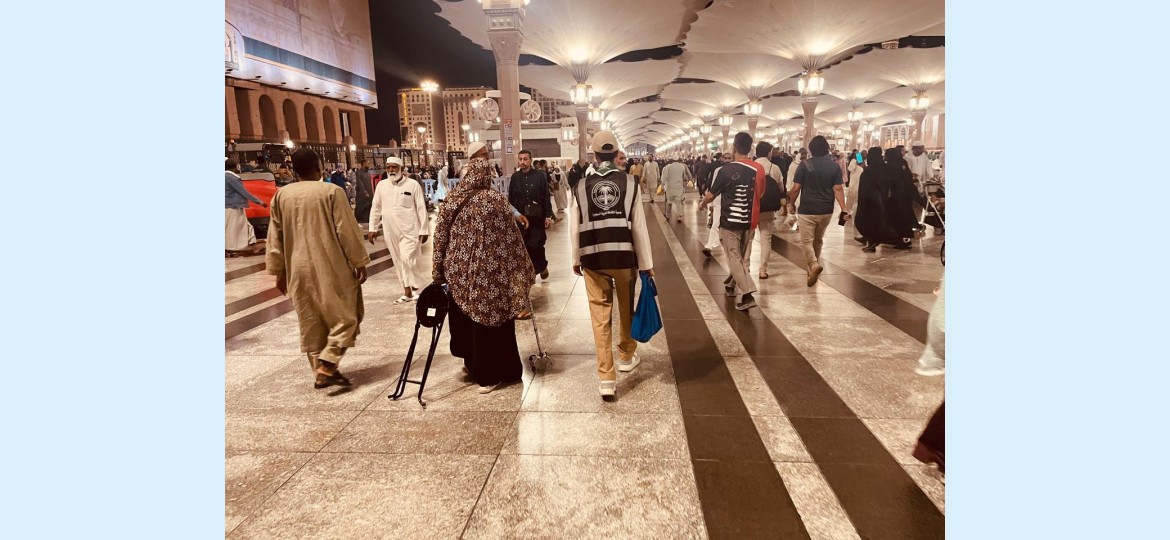 في إحدى الليالي الرمضانية المزدحمة، وقف الكشاف مشعل الرويثي بالقرب من إحدى البوابات يراقب الزوار والمصلين والصائمين، ليلمح رجلاً مسناً خارج الحرم يحمل حقيبة ثقيلة، تتصبب جبينه عرقًا ويبدو عليه الإرهاق، فاقترب منه بلطف وسأله: "عمي، هل تحتاج إلى مساعدة؟" وبابتسامة امتنان، أومأ الرجل برأسه، لم يتردد مشعل لحظة، فحمل المسن على العربة ومعه حقيبته وأخذ يدفع العربة حتى أوصله إلى مقر سكنه القريب، تاركًا خلفه دعوات صادقة من قلب المسن.