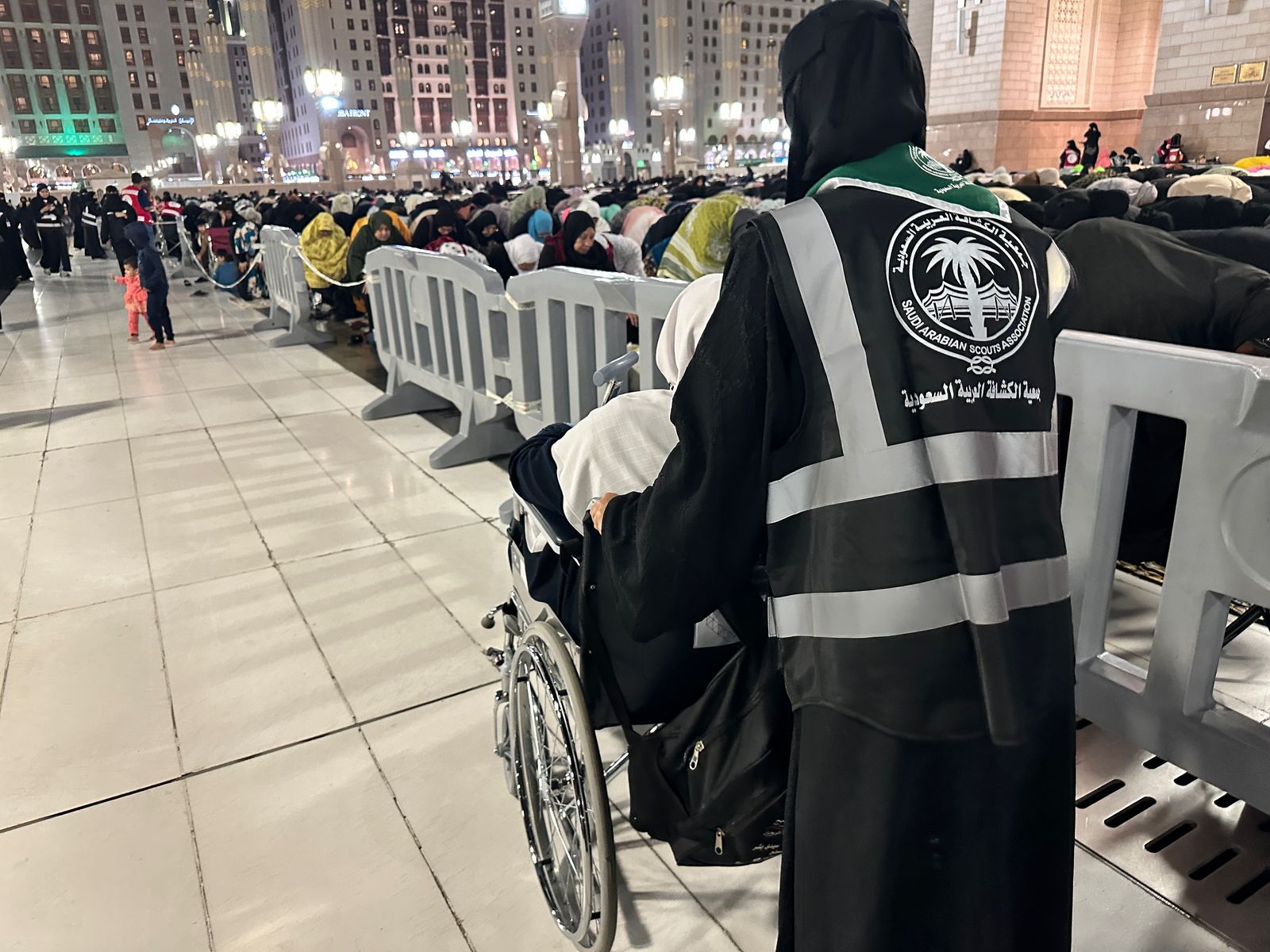 وفي قلب المسجد، كانت الحاجة أم فاطمة تبحث عن طريقها وسط الزحام للوصول إلى الروضة الشريفة، لكن التيه كان سيد الموقف، لمحت شابة ترتدي المنديل الكشفي، فسألتها بتردد عن الطريق، وبابتسامة واثقة، قالت فتاة الكشافة فجر المطيري: "لا تقلقي، سأوصلك إلى هناك." وسارت معها، متجاوزة الحشود برفق، حتى أوصلتها إلى وجهتها وهي تلهج بالدعاء لها، شكرًا وامتنانًا.