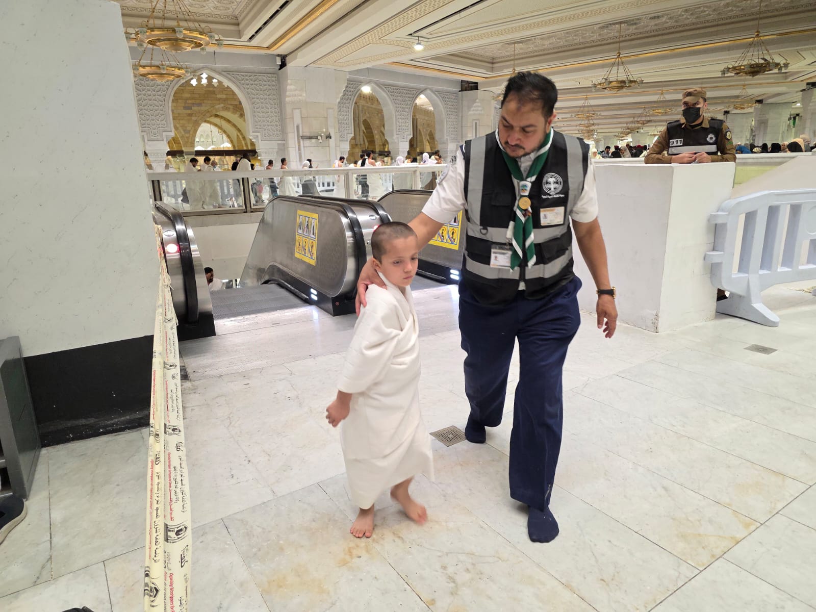 ففي إحدى الليالي الرمضانية، وبينما كان المعتمرون مشغولين بأداء نسكهم، لاحظ أحد أفراد الكشافة طفلاً صغيراً، لا يتجاوز عمره خمسة أعوام، يقف في أحد أروقة الحرم وقد بدت عليه علامات الخوف والارتباك، وبلمحة إنسانية سريعة، اقترب الكشاف منه بلطف، حيث جثا على ركبتيه ليكون في مستوى الطفل، وابتسم قائلاً: "لا تقلق، نحن هنا لمساعدتك، هل تذكر اسم والدك؟"