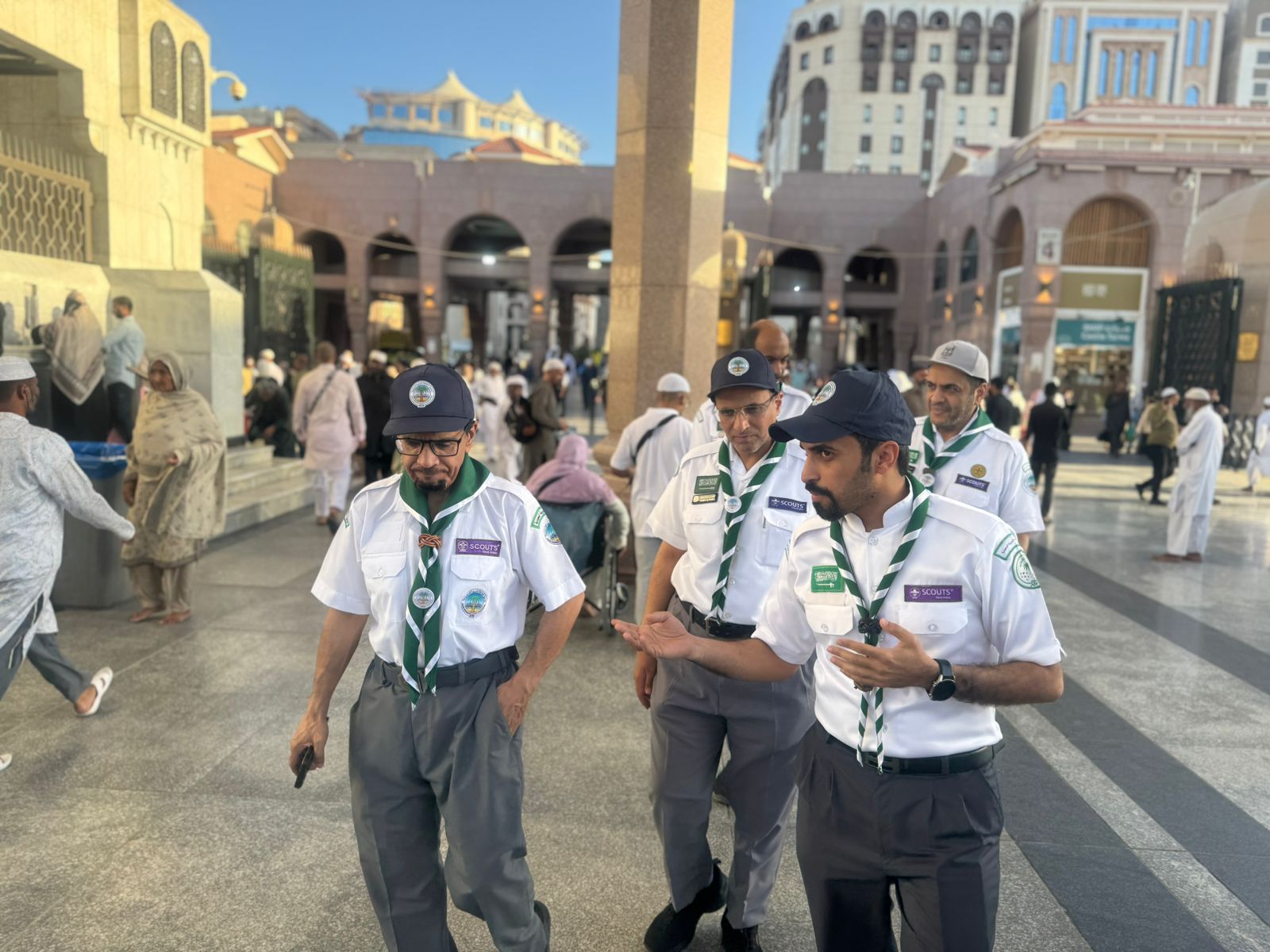 جاء ذلك خلال جولة قام بها اليوم على كافة الوحدات الكشفية المساندة لشركاء النجاح في المسجد النبوي الشريف، رافقه فيها قائد المعسكر ناصر عايض الرويثي، وعبر في ختامها عن شكره باسم كشافي المملكة لخادم الحرمين الشريفين الملك سلمان بن عبدالعزيز؛ وصاحب السمو الملكي الأمير محمد بن سلمان بن عبدالعزيز ولي العهد رئيس مجلس الوزراء ـ حفظهما الله على الخدمات والتسهيلات المكثفة التي تم تهيئتها لراحة وخدمة قاصدي المسجد النبوي الشريف من المصلين والزوار ليؤدوا عباداتهم في أجواء مفعمة بالسكينة والإيمان وبكل يسر واطمئنان وأمان.