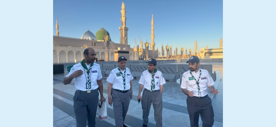 وقدم الشكر لمعالي وزير التعليم رئيس جمعية الكشافة العربية السعودية الأستاذ يوسف بن عبدالله البنيان، على دعمه ومتابعته لجهود ابنائه الكشافة في الحرمين الشريفين.