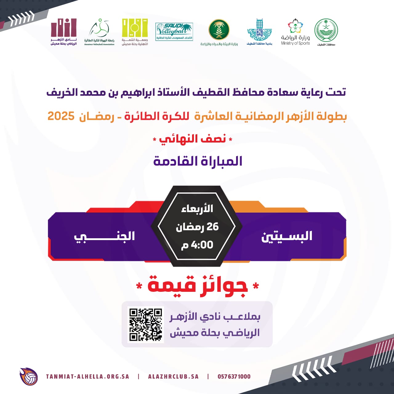 حيث تأتي هذه المباريات ضمن منافسات البطولة التي تنظمها جمعية التنمية الاجتماعية بحلة محيش ونادي الأزهر الرياضي وتحظى برعاية كريمة من سعادة محافظ القطيف وبالشراكة مع بلدية القطيف ووزارة الرياضة ووزارة البيئة والمياه والزراعة والاتحاد السعودي لكرة الطائرة ورابطة الهواة لكرة الطائرة .