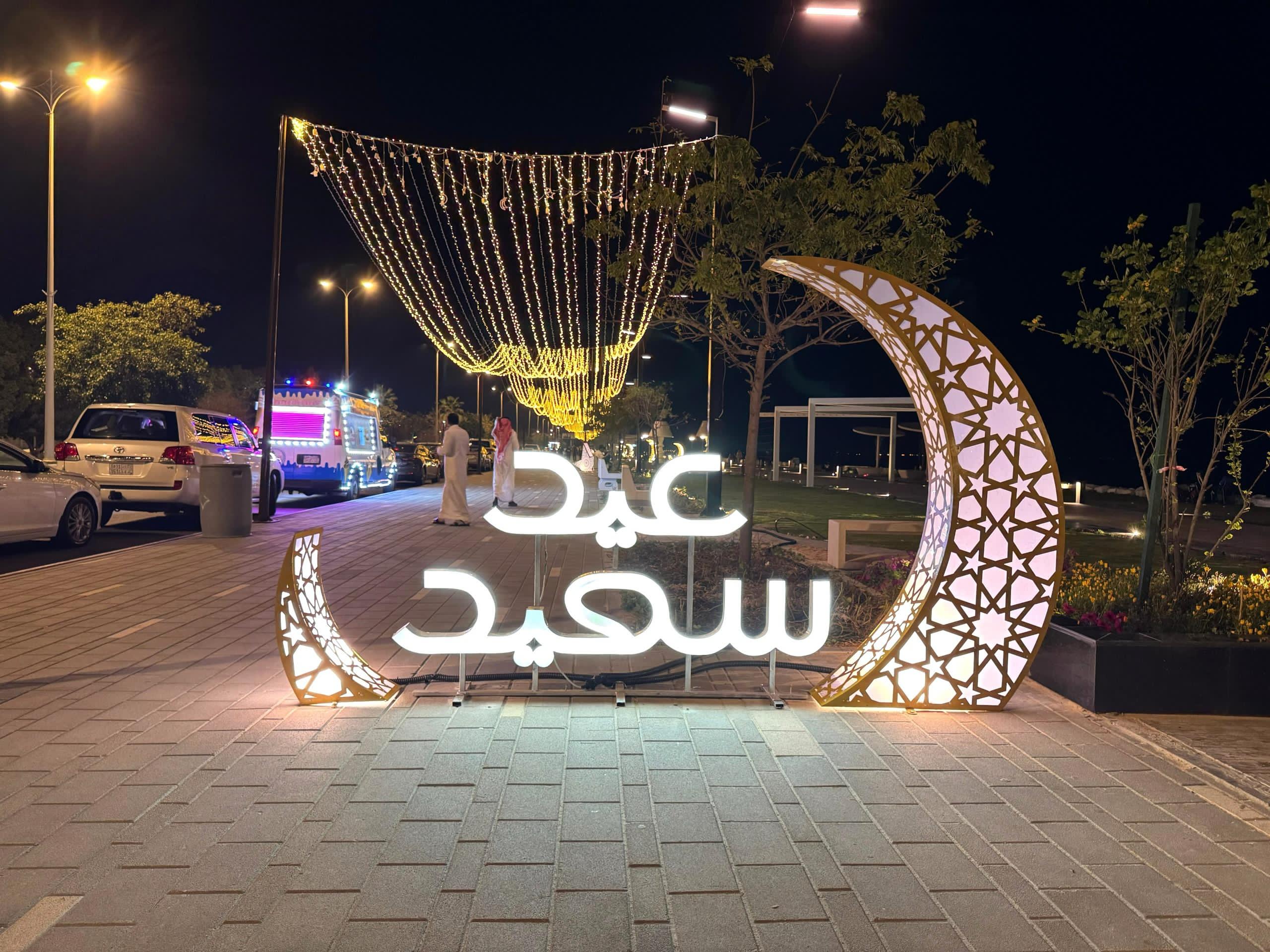 وشملت التجهيزات تركيب أكثر من 3000 بنر على أعمدة الإنارة في الطرق الساحلية والمحورية، إلى جانب 567 سارية في تقاطعات الجسور والأنفاق والواجهات البحرية والحدائق، بالإضافة إلى 200 مجسم يحمل هوية العيد، بعضها مجسمات مضيئة، مما يضفي طابعًا احتفاليًا مميزًا في الأماكن العامة.