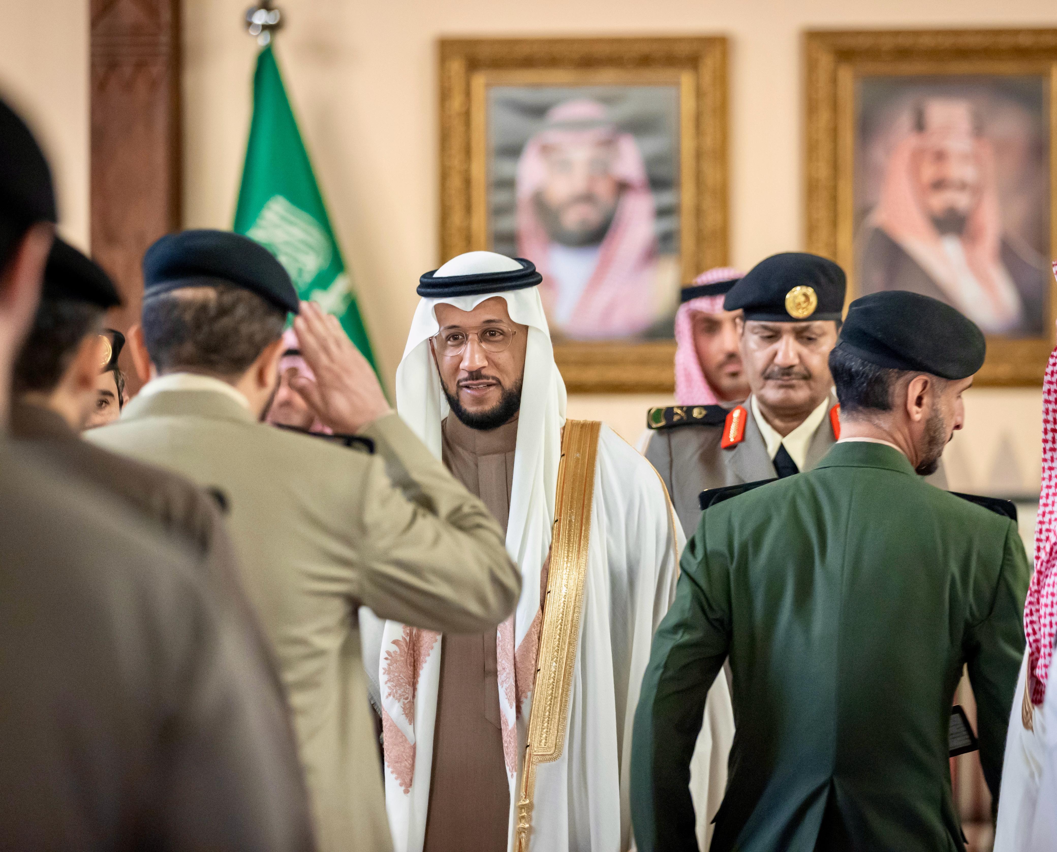 كما استقبل سموه في الصالة الملكية بالخالدية بأبها المهنئين من أصحاب الفضيلة والمعالي، ومسؤولي المنطقة المدنيين والعسكريين، وعدد من المواطنين، الذين قدموا لتهنئة سموه بحلول عيد الفطر المبارك، حيث تبادل معهم التهاني والتبريكات، سائلًا الله أن يعيده على الوطن وقيادته وشعبه بالخير واليمن والبركات.