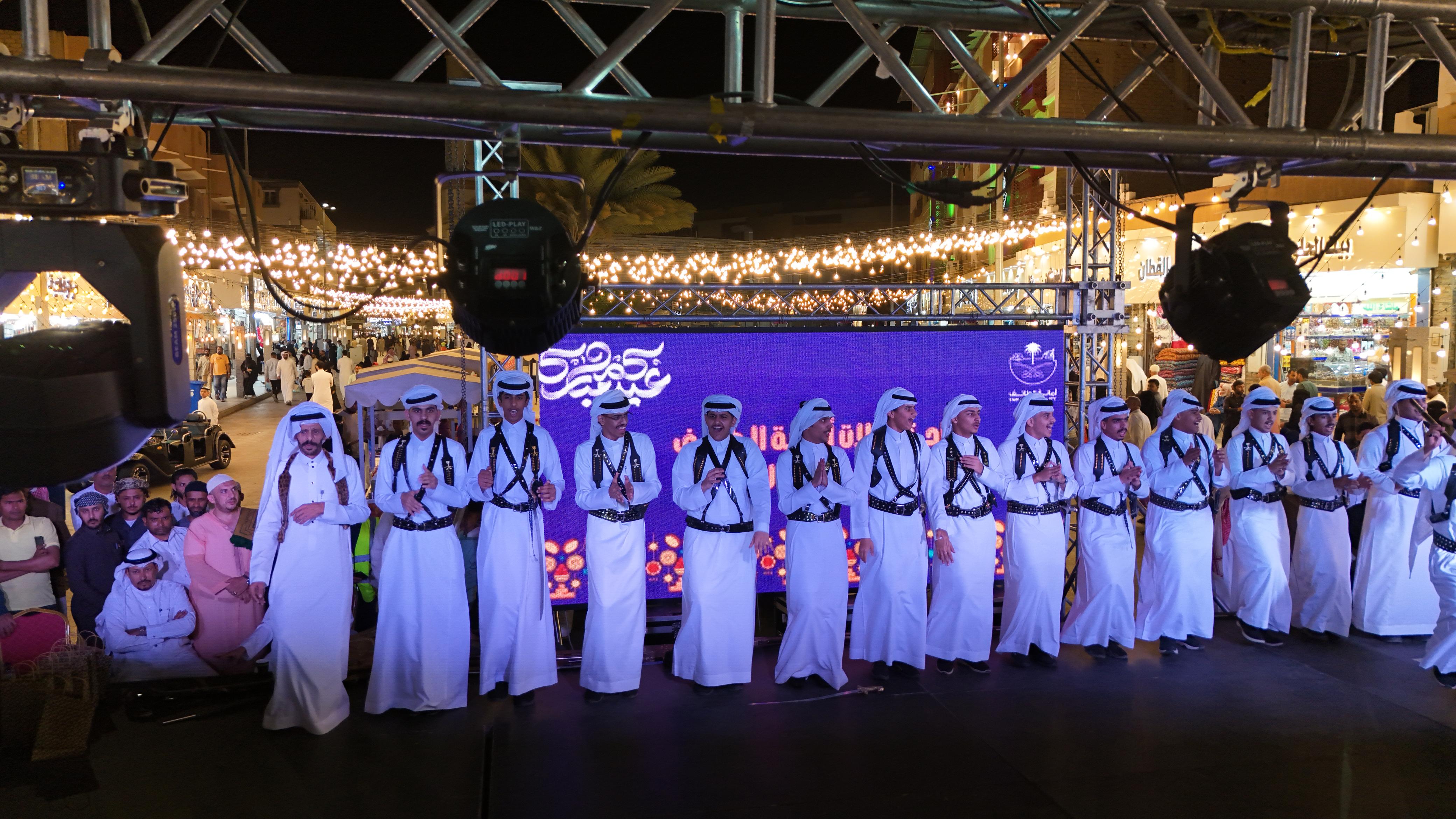 وجذبت عروض الفنون الشعبية الفولكلورية التي تشتهر بها المحافظة والمناطق المجاورة الزوار، حيث كان الإقبال واضحا عليها وعلى المسابقات من زوار مواقع الاحتفالات، وقد تفاعل الكثيرون مع فقرات وأنشطة المسرح المفتوح التي جذبت مئات الأسر مع أطفالهم، واهتمت الأمانة بالتنوع الإثرائي للفعاليات المقامة والتي تمزج بين الأصالة والحداثة، وبين الترفيه والمتعة، بما يحقق التوازن بين التطور الحضاري في الطائف وإرثها التاريخي والسياحي العريق، واستغلال الإمكانات الطبيعية، والموروث الثقافي في إقامة الفعاليات ومشاركة الزوار بهجة العيد السعيد.