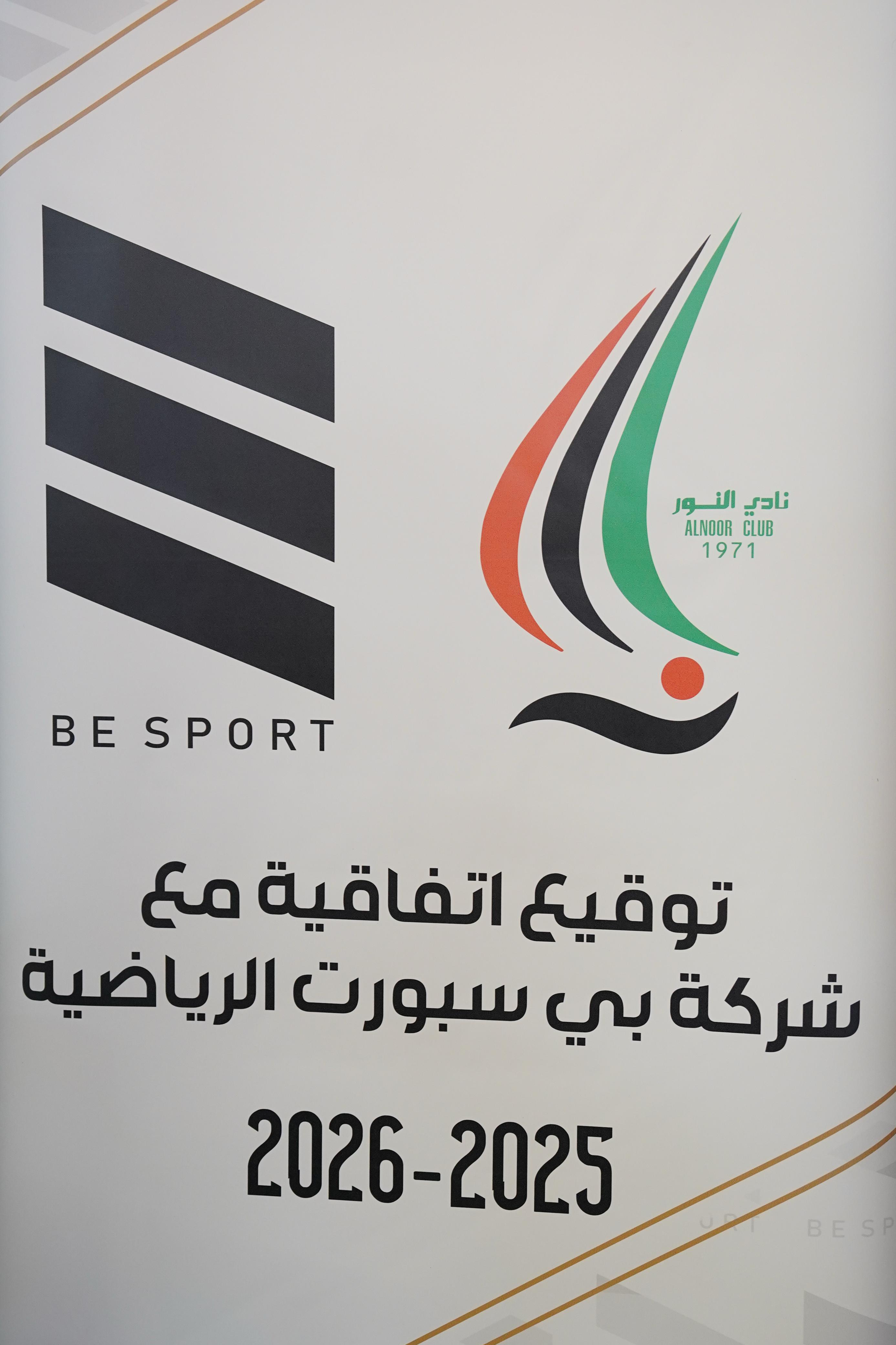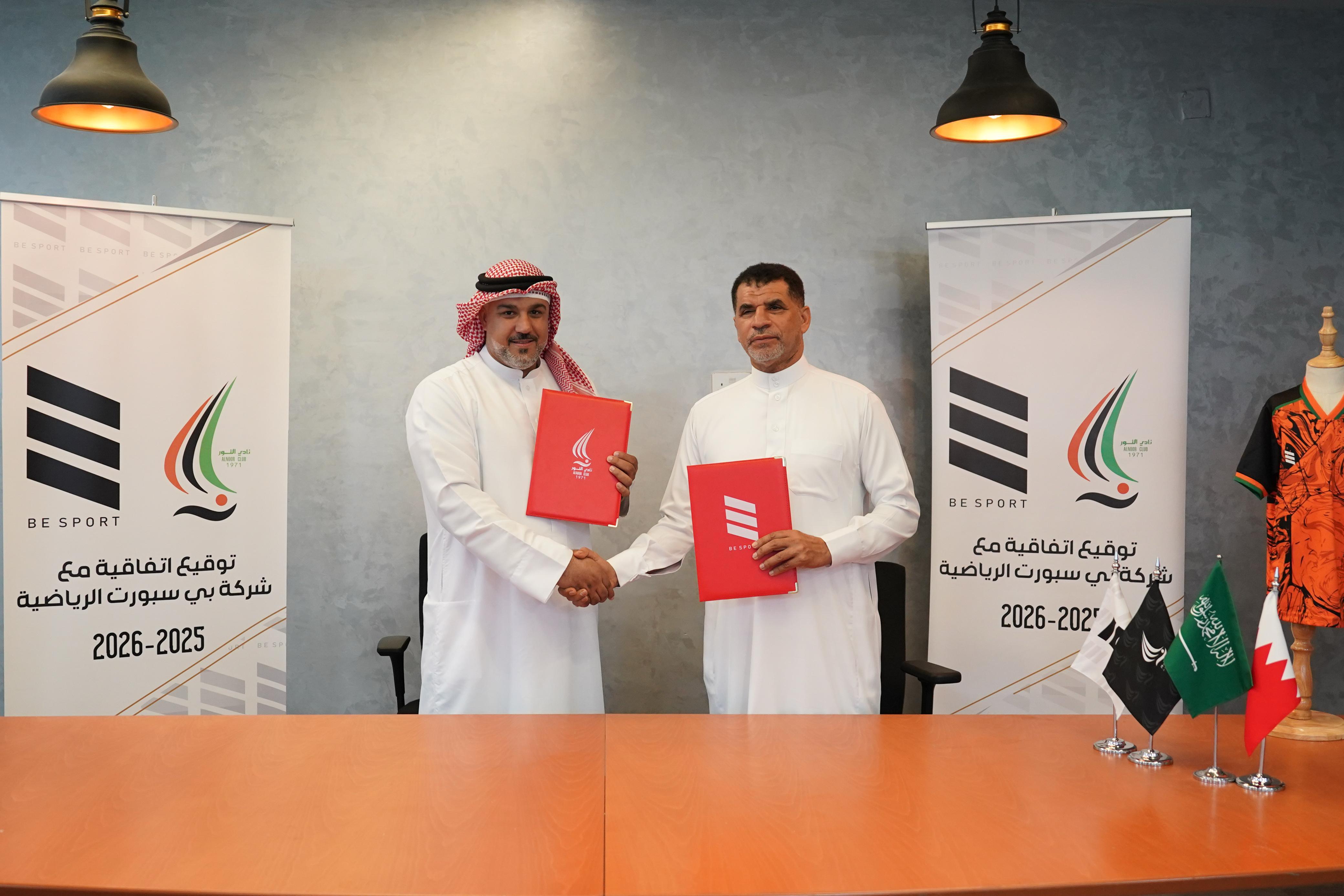 وقع نادي النور الرياضي اتفاقية شراكة جديدة مع شركة "بي سبورت" البحرينية الرائدة في مجال التجهيزات الرياضية، لرعاية فرق النادي بمختلف فئاتها خلال موسم 2025 - 2026، وذلك في إطار استمرار التعاون الناجح بين الطرفين.