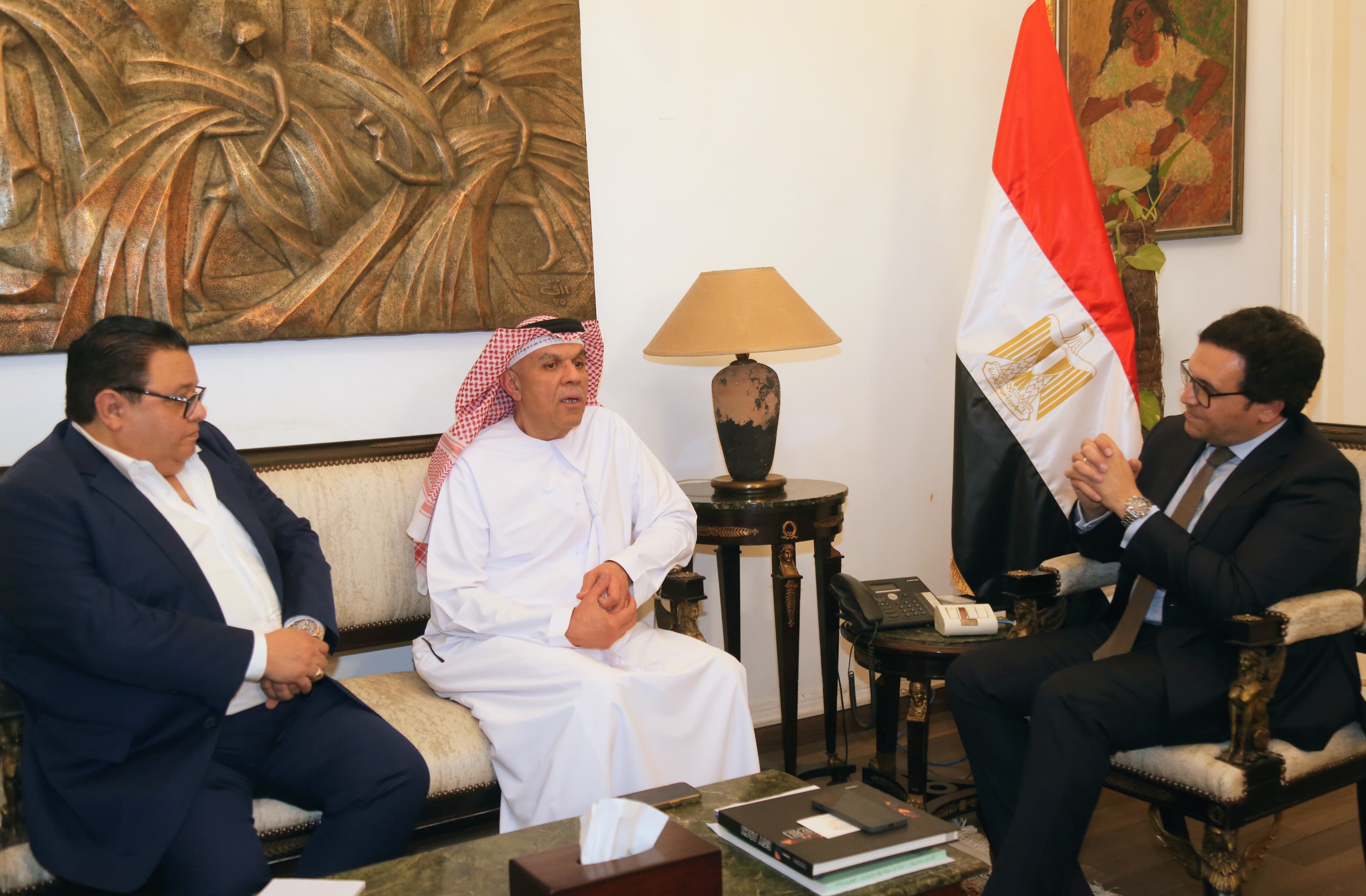 استقبل معالي وزير الثقافة في جمهورية مصر العربية الدكتور أحمد هنو الأمين العام للهيئة العربية للمسرح إسماعيل عبد الله، وذلك في مستهل زيارة العمل التي يقوم وفد الهيئة العربية للمسرح بها للقاهرة في إطار الاستعدادات الخاصة بتنظيم الدورة 16 من مهرجان المسرح العربي والتي ستنظمها الهيئة العربية للمسرح بالتعاون مع وزارة الثقافة المصرية في مصر من 10 إلى 16 يناير 2026، وذلك بحضور مدير التدريب والـتأهيل والمسرح المدرسي في الهيئة العربية للمسرح غنام غنام، والسيد ناصر آل علي مدير الإدارة العامة، كما حضر من الجانب المصري المخرج خالد جلال، رئيس قطاع الإنتاج الثقافي ورئيس قطاع المسرح بوزارة الثقافة، وذلك لمتابعة الترتيبات الخاصة باستضافة مصر للمهرجان، المقرر انطلاقه في يناير المقبل.