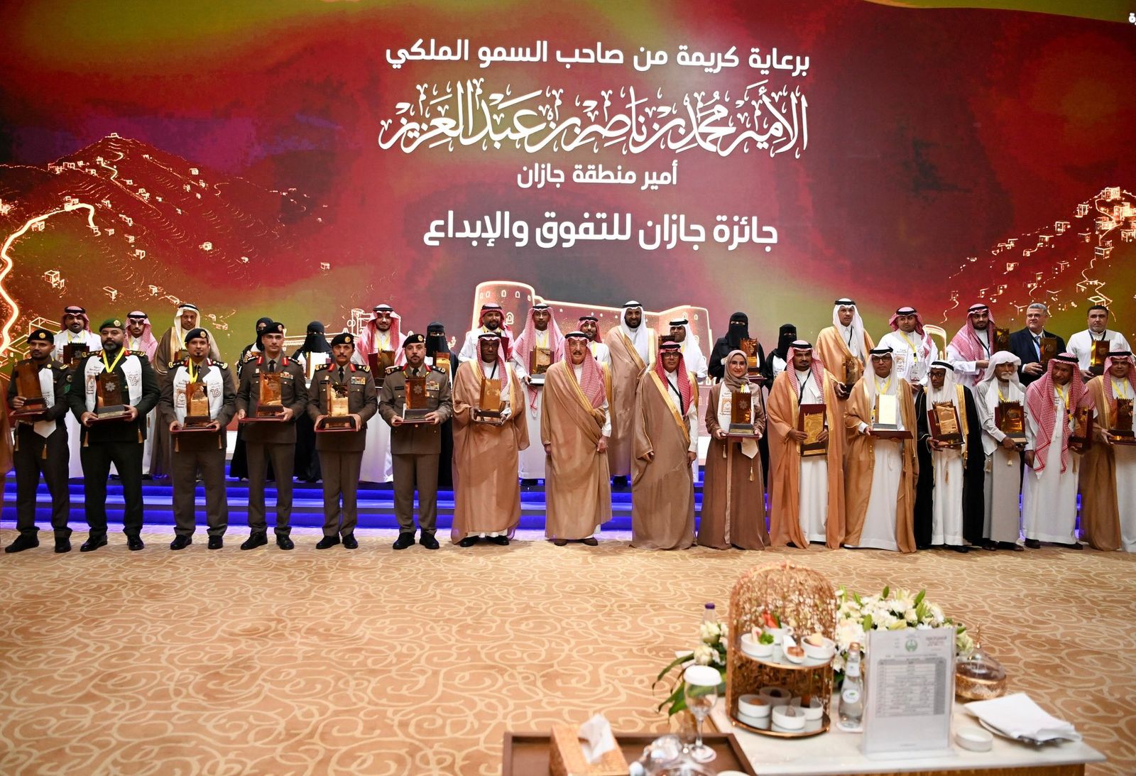 وشهد الحفل عروضًا لمشاركات الفائزين، فيما كرَّم سمو أمير منطقة جازان رئيس مجلس أمناء جائزة جازان للتفوق والإبداع، الفائزين والفائزات بالجائزة, مقدمًا التهنئة للجميع، سائلا الله تعالى أن تكون الجائزة عونًا لمزيد من العمل لخدمة الدين ورفعة وتطور الوطن.