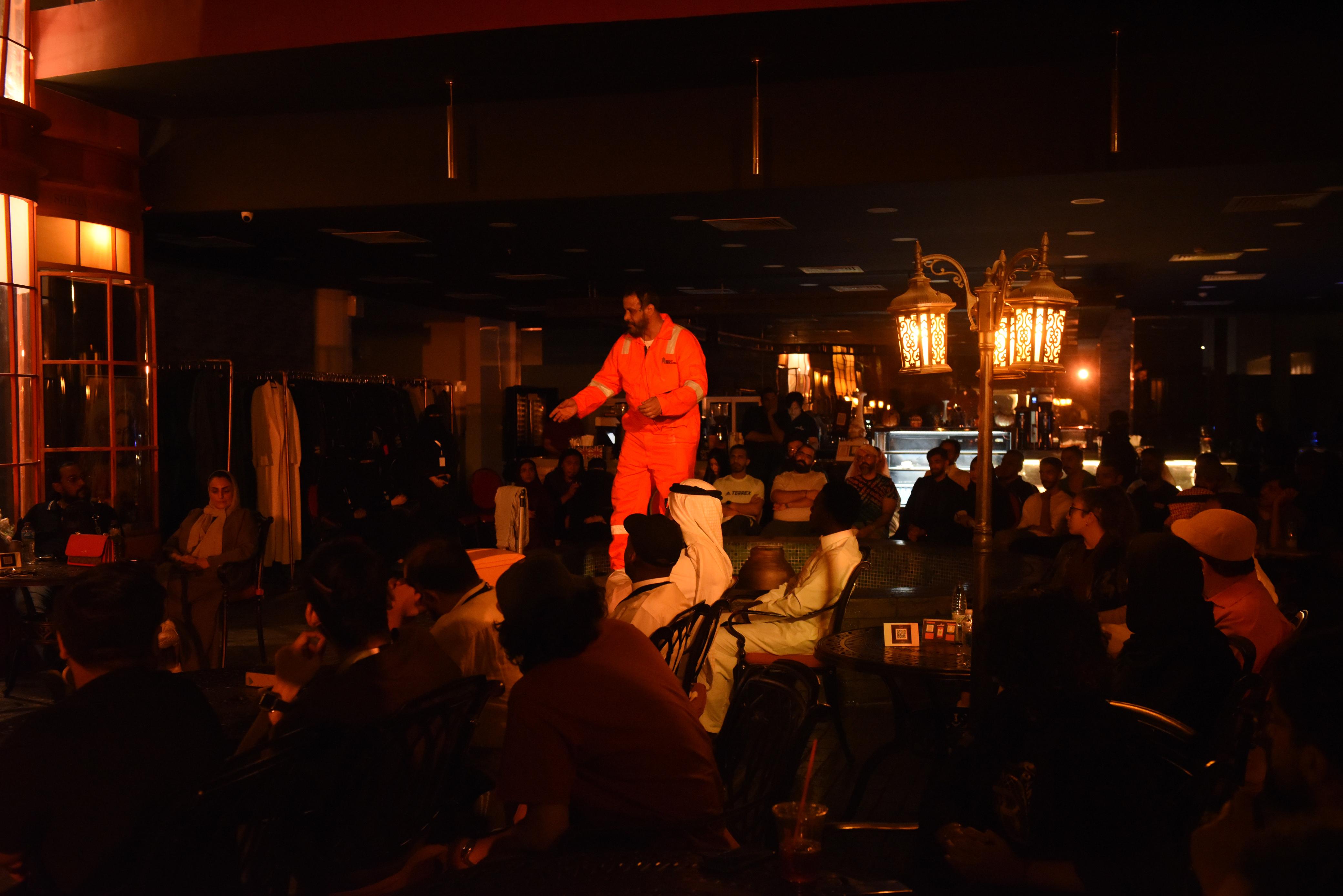 وعن العرض يقول المخرج علي الغراب: هو عرض بريخت في فضاء مفتوح يبحث ذلك الإنسان المهاجر حالة حال الكثير من المهاجرين الذين قهرتهم الظروف القاسية في بلدانهم والتي أجبرتهم على الرحيل الى دول مختلفة بختيار او بدون اختيار ظنا منهم انهم سيجدون الأمان والاستقرار في تلك الدول ولكنه أصبح أسير الذكريات والذي ليس امامه سوى الحنين بالعودة الى حضن الذاكرة المهملة في مخيلته بصور مؤلمة من حالات الاغتراب النفسي وحالات الاغتراب الاجتماعي وحالات الاغتراب الافتراضي التي جسدت في ذلك السندباد الذي لا يعرف الحدود والارصفة لكن هجرة العامل قادته الى حال الهذيان في ذاكرة الحنين وفي كل المحطات التي مر بها طيلة حياته في حالة الانكسار والإحباط والحرمان الطويل وجد نفسه قاب قوسين أو أدنى في ضياع الحلم الذي هاجر من آجلة وفي الأخير لم يجد نفسة فيما مضى لكنه وجد نفسه في عالم مسرحي يفضي إليه ما بقريحته ليكون الممثل الواحد في مكان لا يشبهه أحد ليقدم عرضا مسرحي بثقة.