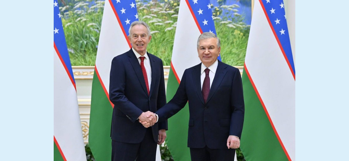 طشقند، استقبل رئيس جمهورية أوزبكستان شوكت ميرضيائيف رئيس الوزراء البريطاني الأسبق ورئيس معهد التغيير العالمي توني بلير.