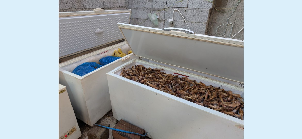 وأضافت الأمانة أن أعمال الرصد كشفت عن حوش عشوائي يحتوي على 37 ثلاجة ضبط بداخله أكثر من 10,800 كيلوغرام من اللحوم الفاسدة، إضافة إلى أربع منازل مجاورة استُخدمت كمواقع تخزين غير نظامية، ضُبط فيها 1,200 كيلوغرام، و3,600، و3,800، و1,800 كيلوغرام على التوالي، ليصل إجمالي الكمية المضبوطة إلى 21,200 كيلوغرام موزعة داخل 65 ثلاجة.