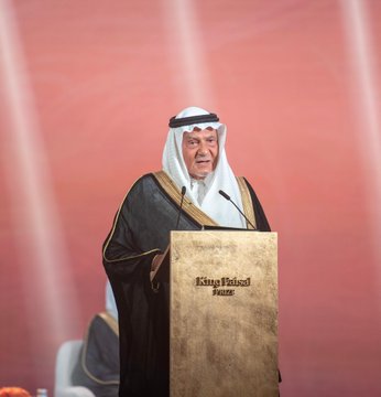 وقال: «الحمد لله الواحد الأحد الذي وهبنا نعمة الإيمان به، وسخر لنا نعم الدنيا لنشكره ونعبده، ومن نعمه قيادتنا الرشيدة التي إن رأت أمامنا أبواباً موصدة للرقي والازدهار فتحتها، وإن وجدت أمامنا نوافذ مغلقة للرفعة والافتخار شرعتها، فبحمده نسير مطمئنين لنصل إلى ما استشرفه فيصل بن عبدالعزيز لهذا البلد الطيب أن يكون مصدر إشعاع للإنسانية»، مهنئاً الفائزين بالجائزة.