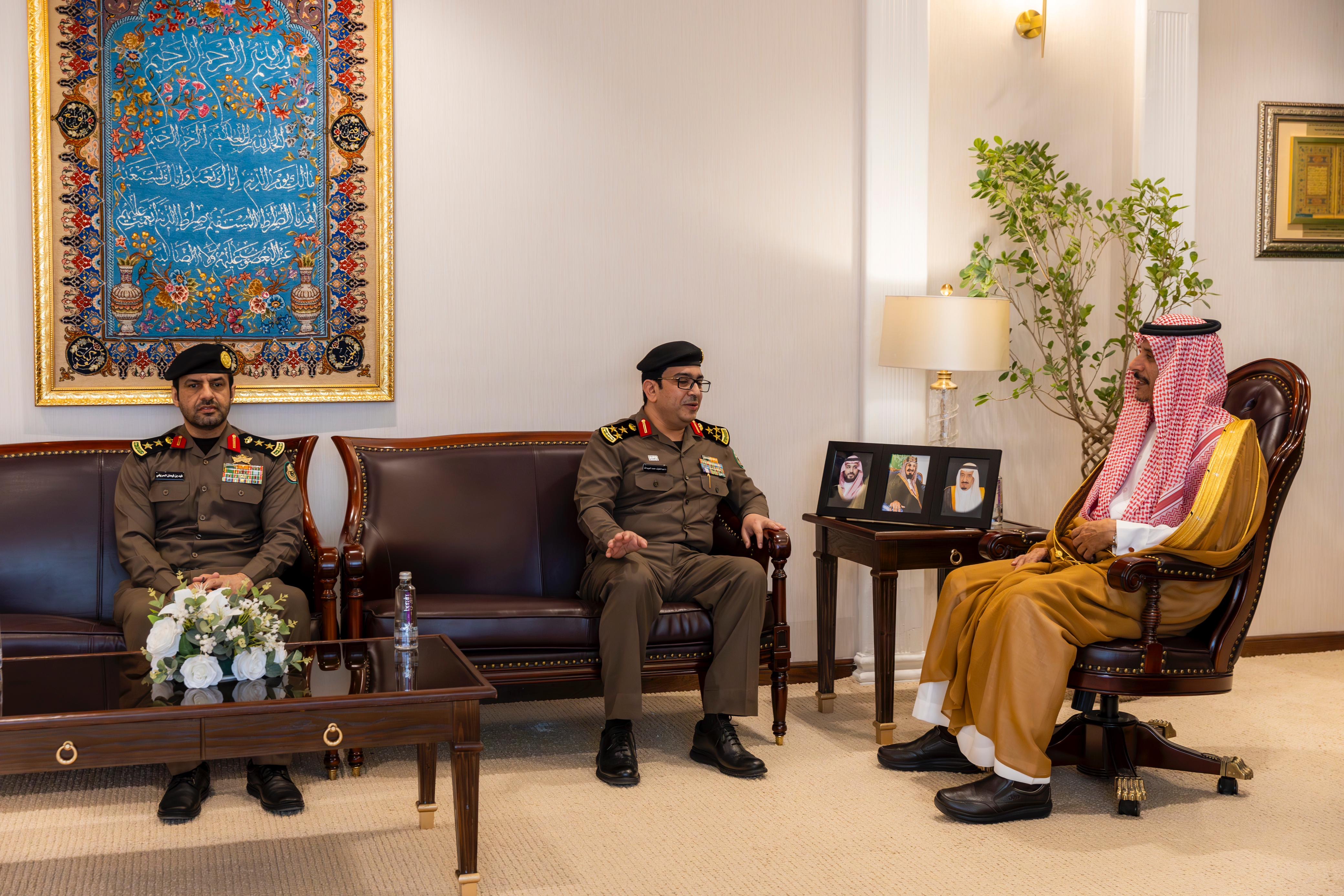 استقبل صاحب السمو الأمير عبدالرحمن بن عبدالله بن فيصل، محافظ حفرالباطن بمكتبه اليوم، مدير مرور المنطقة الشرقية العميد الدكتور عبداللطيف بن محمد العبيدالله، يرافقه مدير مرور المحافظة المكلف العقيد فهد فيحان المريخي، واستمع سموّه خلال اللقاء إلى شرح عن جهود إدارة مرور المنطقة الشرقية التي شملت التعاون مع عدد من الجهات؛ لتحسين الطرقات الرئيسة، والإشارات المرورية والعلامات الإرشادية.