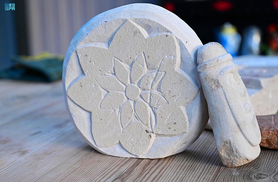 وكشفت أن مدة إنجاز أعمال النّحت الصخري تختلف حسب نوع النقش وحجم المجسم، حيث خصصت جزءًا من مزرعتهم الخاصة معملًا تقضي فيه معظم وقتها مع المطرقة الصغيرة والصخور المتنوعة، لتنتج عددًا من التحف الفنية التي تقدمها لزائري العلا.