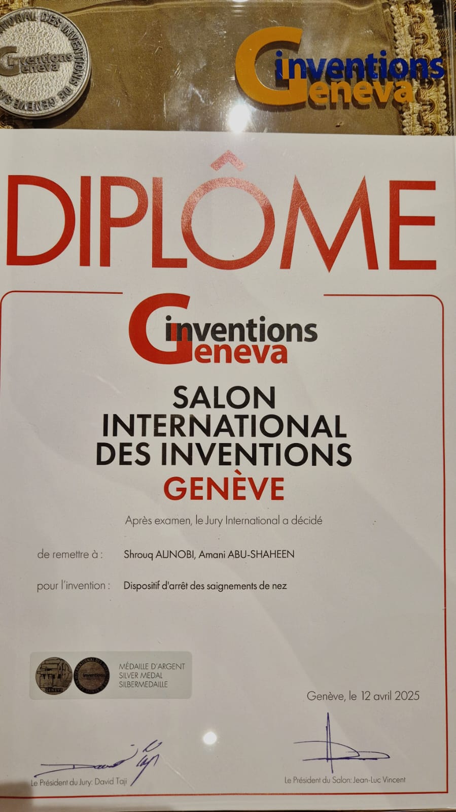 حققت المملكة العربية السعودية إنجازاً جديداً على الساحة الدولية، حيث حصدت المخترعة والكاتبة السعودية شروق الجنوبي، والباحثة الدكتورة أماني أبو شاهين، الميدالية الفضية الدولية في معرض جنيف الدولي للاختراعات، أحد أبرز المعارض العالمية المتخصصة في الابتكار والاختراع، وذلك عن اختراع “أداة وقف النزيف الأنفي”.