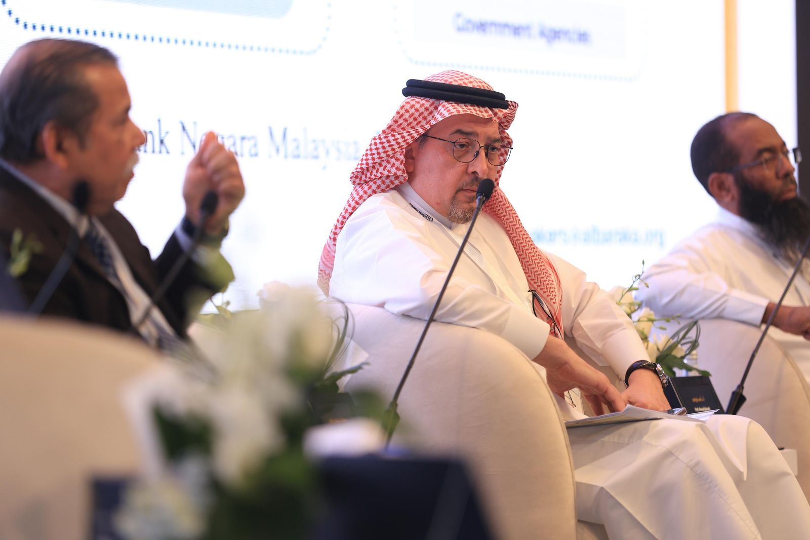 أما الجلسة الخامسة فجاءت بعنوان (مستقبل المصارف الإسلامية: بين التحديات والفرص الواعدة)، وأدارها رئيس مجلس إدارة شركة الإنماء طوكيو مارين عبدالمحسن الفارس، وشارك فيها كل من رئيس إدارة المخاطر، عضو مجلس الإدارة في بنك جيتهوس الدكتور عثمان تشودري، ورئيس إدارة المخاطر والحوكمة، عضو لجنة الاستثمار في "كيو إنفست" بقطر الدكتور وائل عيد، والأمين العام السابق لمجلس الخدمات المالية الإسلامية (IFSB) الدكتور بللو لاوال دانباتا، وعقّب على الجلسة معالي رئيس مجلس إدارة بورصة ماليزيا تان سيري عبدالواحد بن عمر، وأستاذ الاقتصاد والتمويل الإسلامي بكلية الاقتصاد والإدارة بجامعة إسطنبول صباح الدين الدكتور منذر قحف.