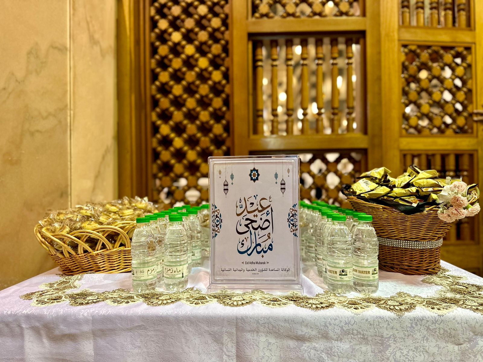 كما نفذت الوكالة المساعدة للشؤون الخدمية والميدانية النسائية برنامج بعنوان " عيد أضحى مبارك " وذلك من خلال استقبال زائرات المسجد النبوي بالحفاوة والترحيب بهنّ إضافةً الى تقديم عددًا من الهدايا العينية لهنّ .