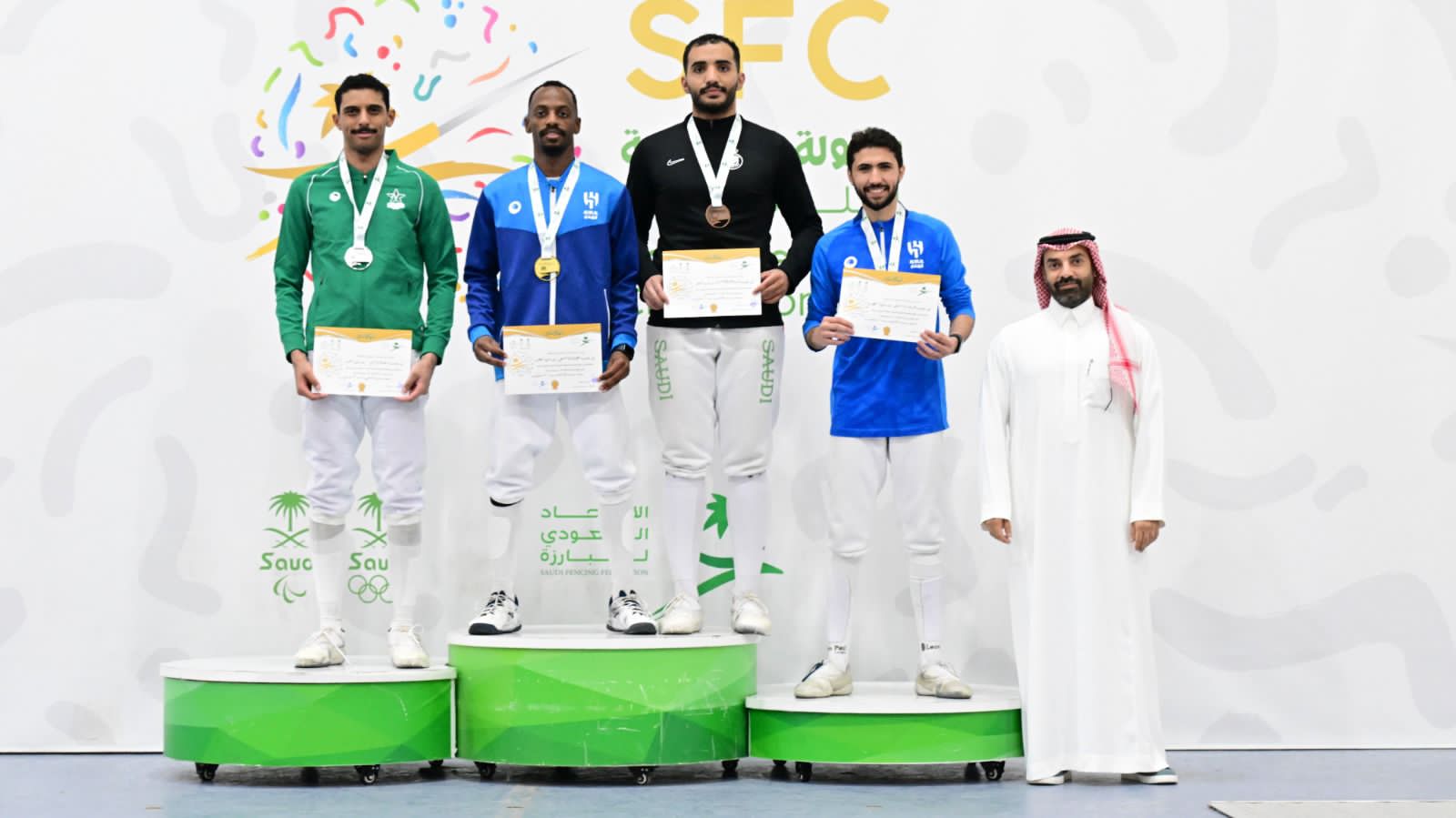 حيث حقق علي البنعلي (الهلال) ذهبية سلاح الشيش، وحل سعود الربيع (النجمة) ثانيا، وجاء محمد الدخيل (الهلال) ثالثا، وعبدالملك الأومير (النصر) الثالث مكرر.