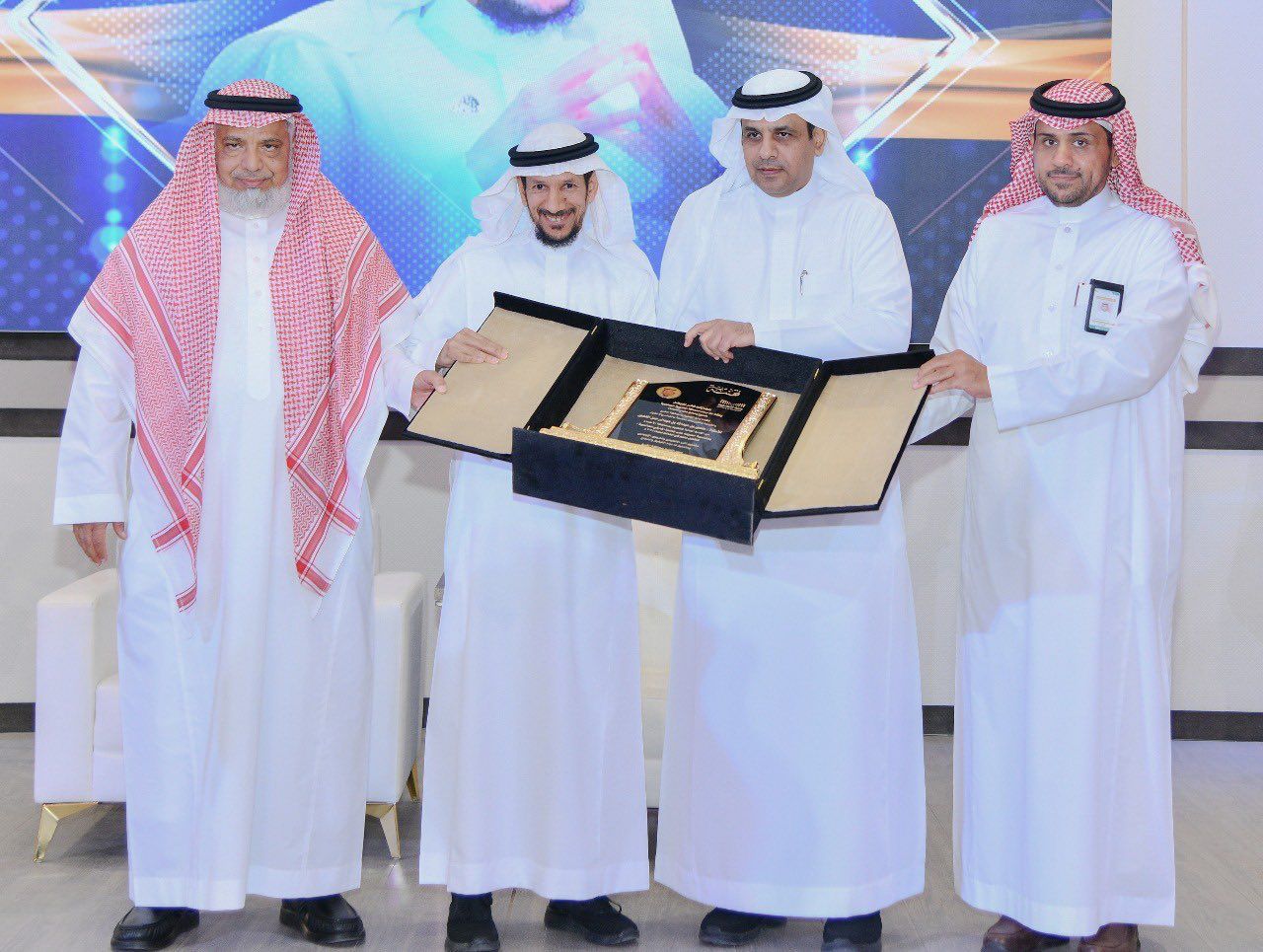 وفي ختام الاحتفاء تسلم ايقونة التعليم والتأثير الأستاذ : منصور المنصور درعا تذكاريا من مدير تعليم الخرج الأستاذ : عبدالله بن عاقل الزايدي والراعي الرسمي خالد بن راشد الغانم. تقديرا لمساهماته ومنجزاته الاستثنائية…