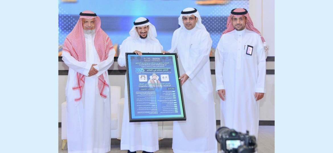 تلا ذلك كلمة لمدير التعليم أشاد فيها بجهود المعلم منصور في تقديم أساليب تربوية وتعليمية حديثة، مما أسهم في تحقيقه لجوائز دولية ومحلية وإقليمية عدة، توجها بلقب أفضل معلم في العالم، كما بارك له هذا الإنجاز الكبير متمنياً له مزيداً من التوفيق في مواصلة رسالته السامية ، مؤكدًا أن هذا الإنجاز يعكس حجم الرعاية والاهتمام اللذين توليهما القيادة الحكيمة- أيدها الله - لقطاع التعليم ومنسوبيه من معلمين ومعلمات وطلاب وطالبات ،