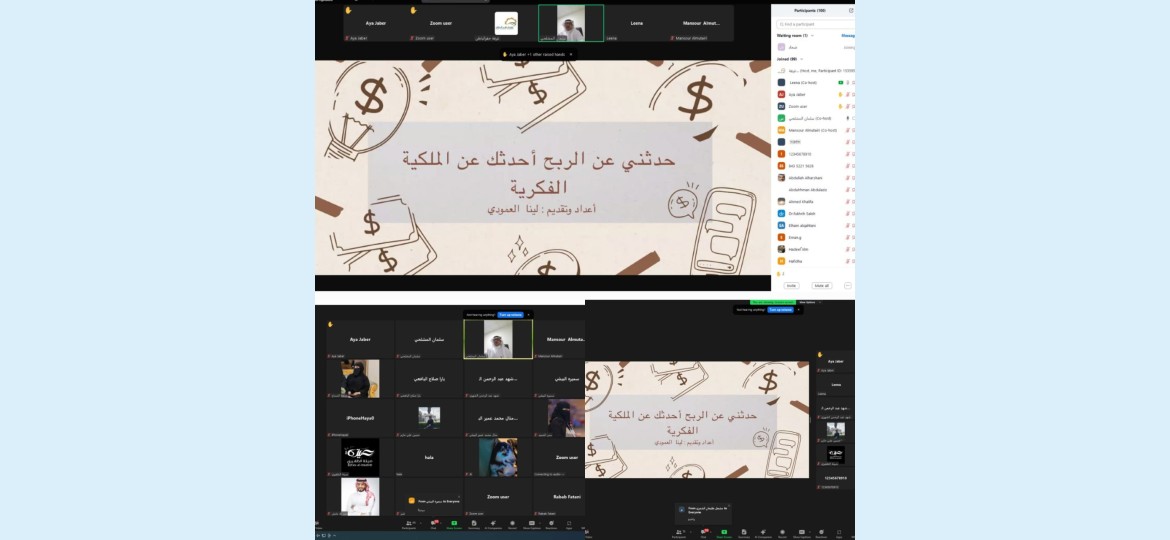 نظمت غرفة حفرالباطن، تزامنًا مع يوم الملكية الفكرية العالمي وأسبوع الابتكار 2025، ورشة عمل افتراضية عبر منصة Zoom بعنوان "الملكية الفكرية"، قدمتها المدربة المعتمدة الأستاذة لينا العمودي، وحضر الورشة أكثر من 100 متدرب ومتدربة من المهتمين بمجالات الإبداع، الابتكار، وريادة الأعمال.
