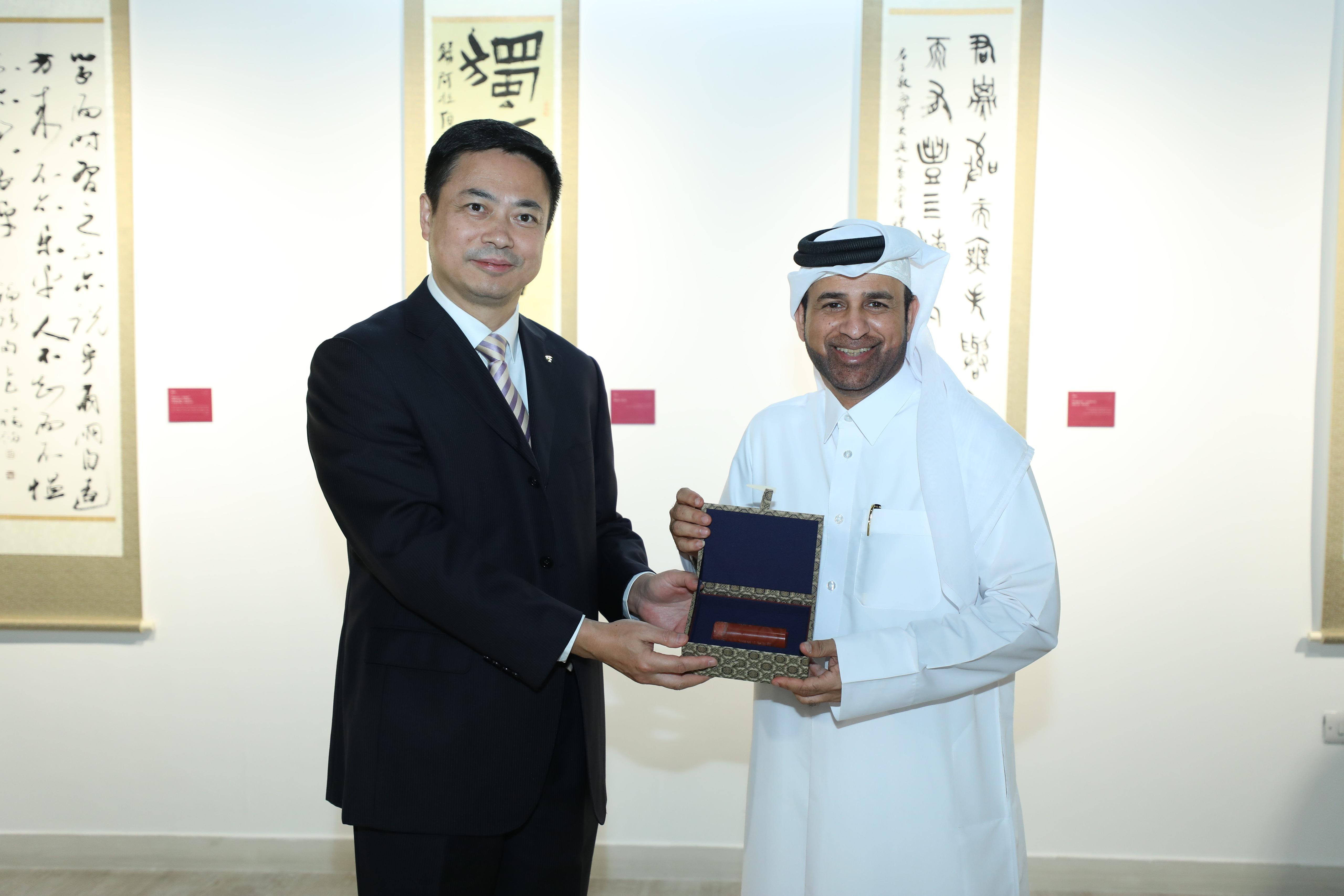 أما في قاعة 2 بمبنى 19، فقد افتتح سعادة الاستاذ الدكتور خالد بن ابراهيم السليطي مدير عام كتارا معرض "حوار الحروف بين قطر والصين"، وذلك بحضور سعادة السيد تساو شياولين سفير جمهورية الصين الشعبية لدى الدولة، وعدد وعدد من الخطاطين القطريين والصينيين.