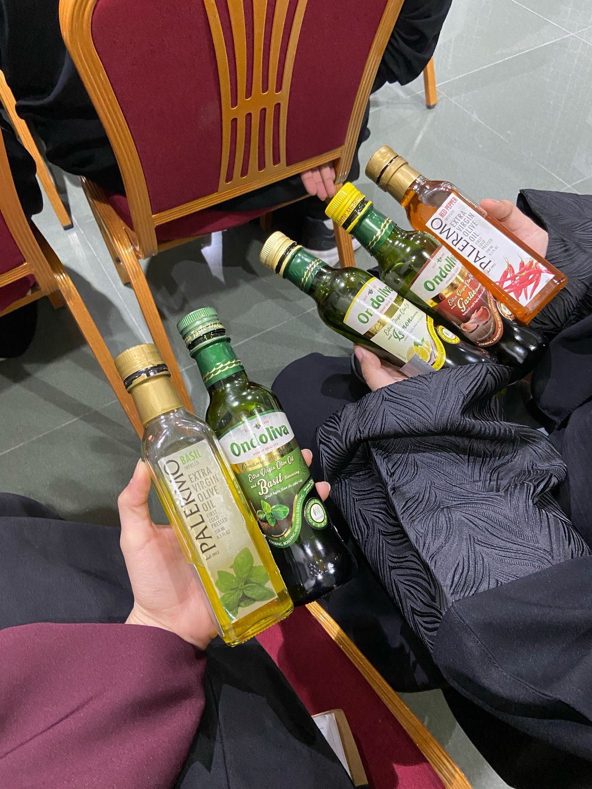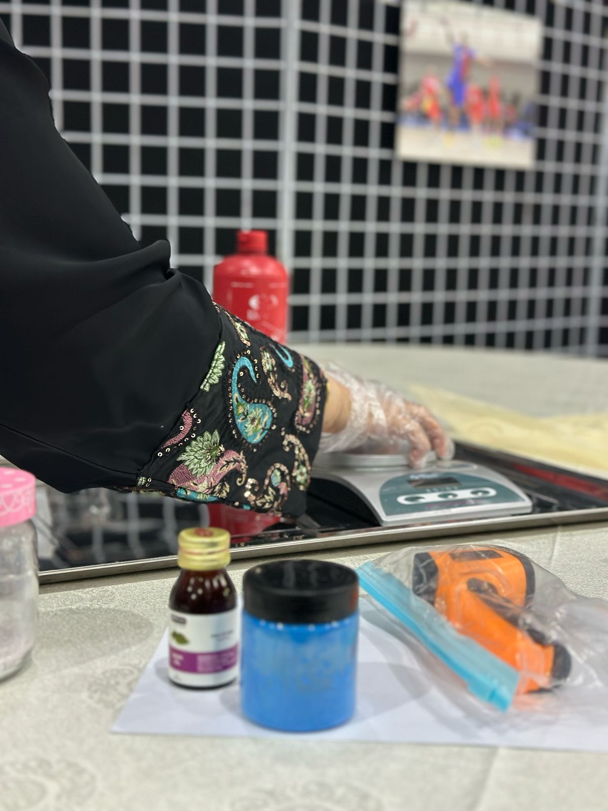 كما تطرقت المدربة للزيوت الداخلة في الوصفة و فوائدها ونسبة إضافتها و دراسة أنواع الزيوت النباتية المختلفة (مثل زيت الزيتون، زيت جوز الهند، زيت النخيل) وفوائدها للبشرة وكيفية تحديد النسب المناسبة لكل زيت في الوصفة، فيما زودت المدربة العويوي المتدربات بمجموعة من الوصفات المتنوعة والجاهزة للتطبيق الفوري في منازلهن.