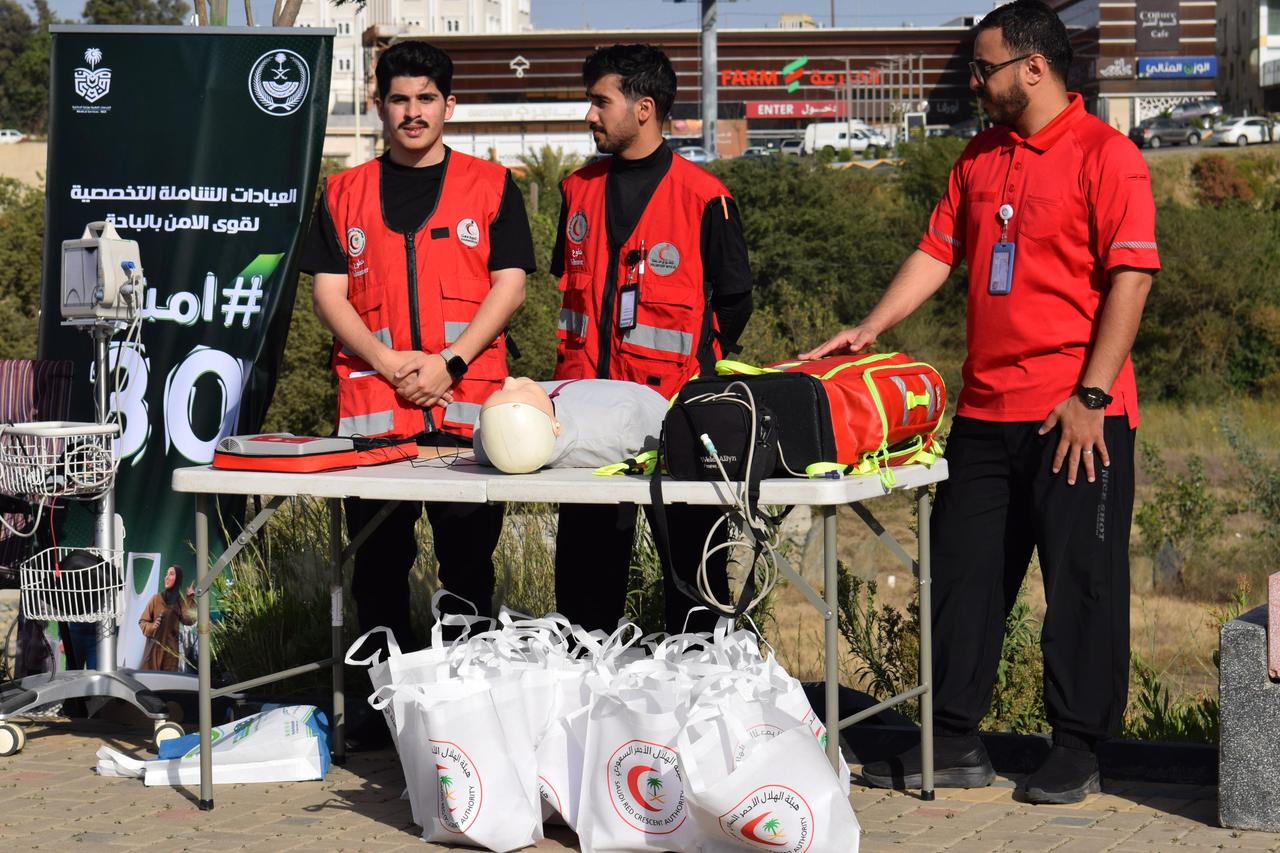 كما نفذ الهلال الأحمر ضمن الفعالية مبادرة “خطوة ومهارة”، التي تهدف إلى تعليم المهارات الأساسية في الإسعافات الأولية من خلال أربع محطات تدريبية، شملت: الإنعاش القلبي الرئوي، إيقاف النزيف، استخدام جهاز الصدمات القلبية، والتعامل مع حالات الاختناق، حيث قدم التدريب مختصون معتمدون في مجال الإسعافات الأولية.