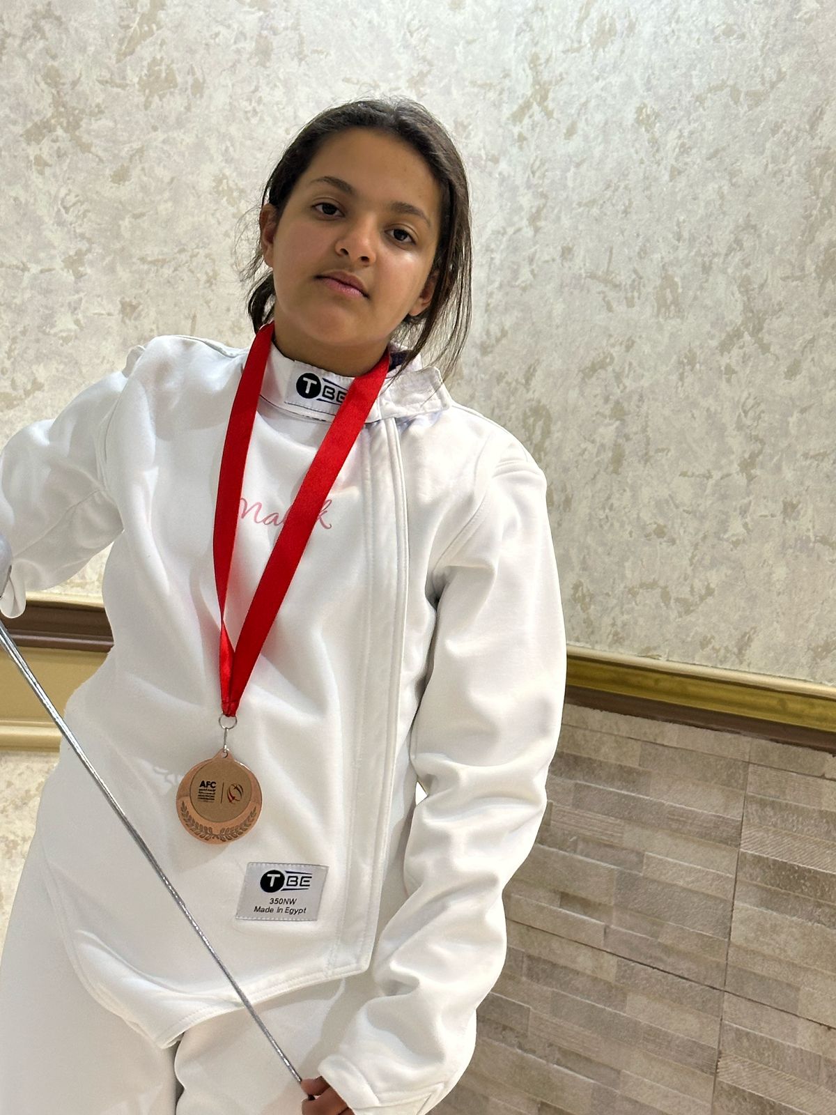 اهتمّ بتدريبات المدرب والمواظبة على التمارين في وقتها وأقوم بواجباتي اليومية وتنظيم الوقت بين حياتي لتكون متوازنة بين حياتي ورياضة المبارزة