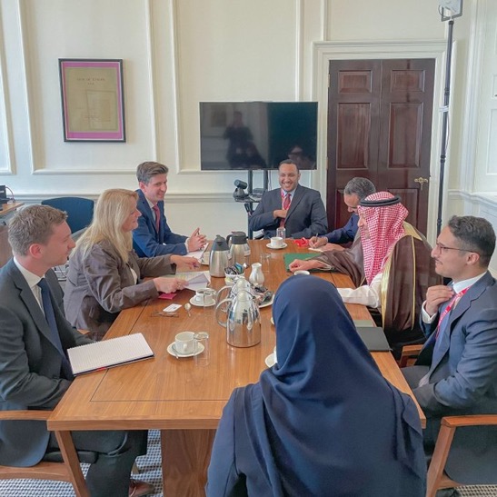 حضر اللقاء، صاحب السمو الملكي الأمير سعد بن منصور بن سعد بن سعود بن عبدالعزيز مدير عام الإدارة العامة للدول الأوروبية في وزارة الخارجية.