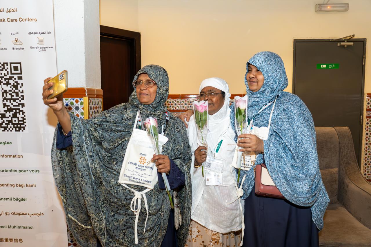 ونظمت إكرام الضيف من خلال مركز الخدمة (153) حفل استقبال خاص لحجاج بنجلادش اشتمل على تقديم القهوة السعودية والورود والهدايا والوجبات وماء زمزم والعبارات الترحيبية.