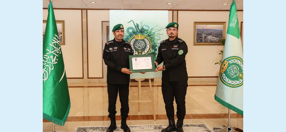 وتسلم شهادة الاعتماد معالي رئيس الحرس الملكي الفريق الأول الركن سهيل بن صقر المطيري، من قائد المعهد اللواء المهندس بندر بن ظافر القرني .