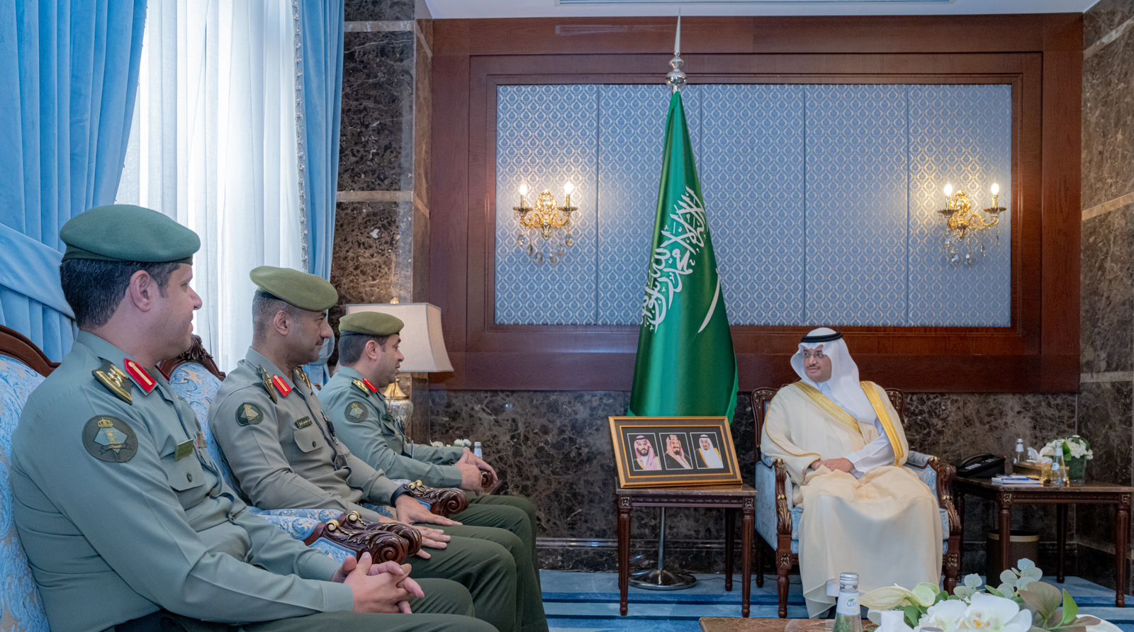 استقبل صاحب السمو الملكي الأمير سعود بن طلال بن بدر محافظ الأحساء، بمكتب سموّه بمقر المحافظة ، اليوم " الأحد "، مدير جوازات المنطقة الشرقية العميد ضويحي بن وبدان السهلي، وذلك بمناسبة تعيينه مديرًا لجوازات المنطقة، يرافقه عدد من قيادات الجوازات.