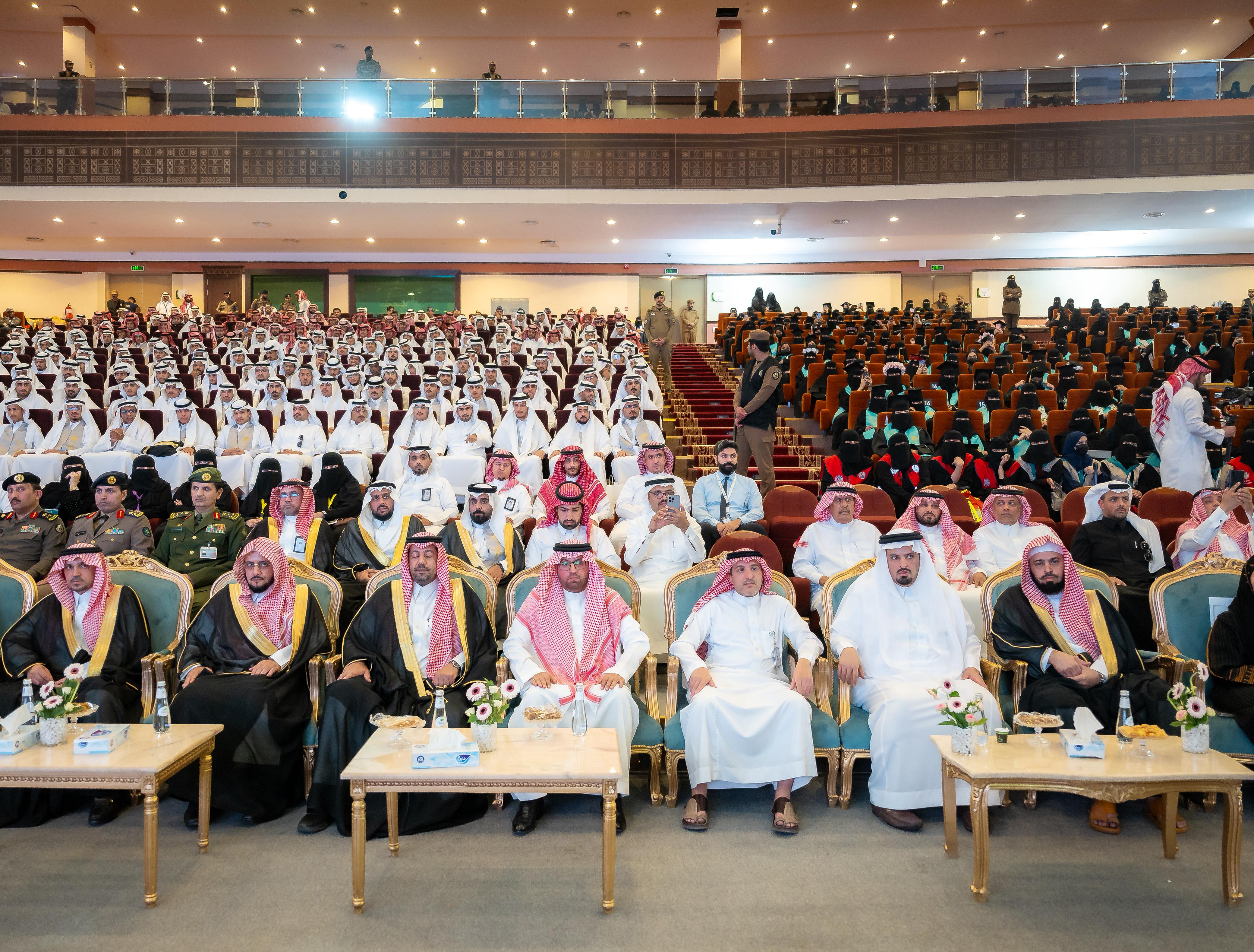 وفور وصول سموّه إلى مقر الحفل، عزف السلام الملكي بعد ذلك بدأ الحفل الخطابي الذي استُهل بتلاوة آيات من القرآن الكريم، ثم ألقت الخريجة شوق بنت سعيد الغامدي كلمة الخريجين، عبّرت فيها عن سعادتهم بالتخرج، مثمنةً رعاية سمو أمير المنطقة وحضوره ومشاركته فرحتهم، ومؤكدةً عزم الخريجين والخريجات على مواصلة العمل لخدمة الدين ثم المليك والوطن.