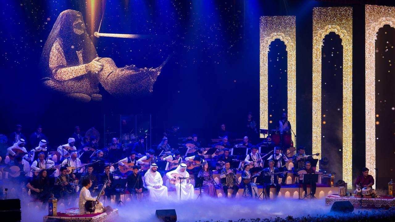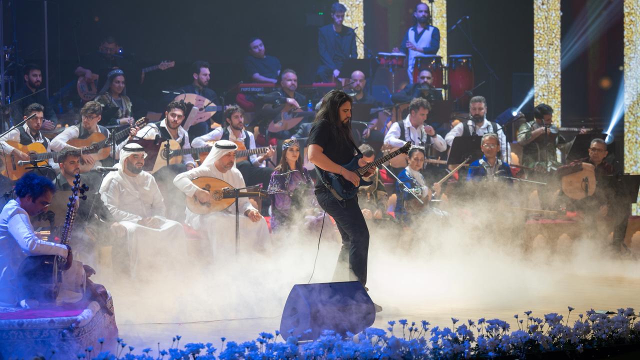 وتضمّن حفل انطلاق الملتقى عرضاً موسيقياً ضخماً قدّمته أوركسترا مكونة من 50 عازفاً من جنسيات متعددة، قدموا ساعة موسيقية ساحرة مزجت بين أنماط مختلفة مثل الفلامينكو الإسباني، والروك، والموسيقى العربية الشرقية، إلى جانب الأنماط الهندية، والأوزبكية، والأذربيجانية، والتركية، في مشهد يعكس روح التنوع والانفتاح الثقافي العالمي.