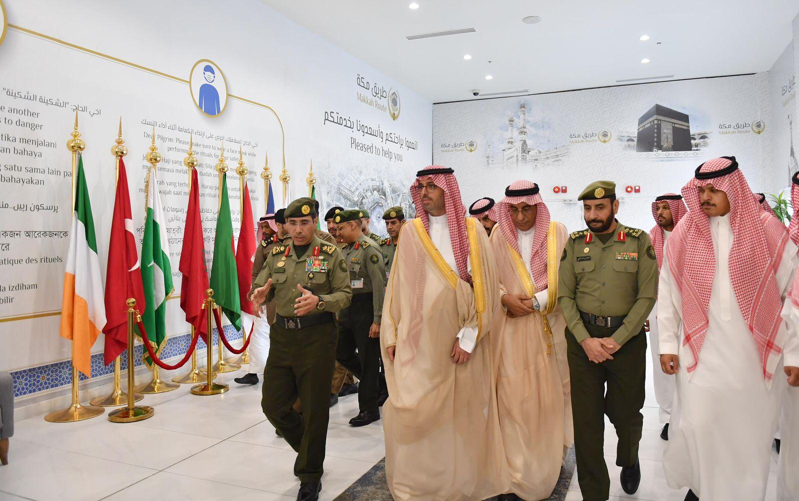 كما تفقّد سموه, صالة الجوازات بالمطار واطّلع على التجهيزات البشرية والتقنية الموفرة لخدمة ضيوف الرحمن، واطلّع على مبادرة "طريق مكة" التي تنفذها وزارة الداخلية في عامها السابع، والجهود المبذولة لخدمة الحجاج.