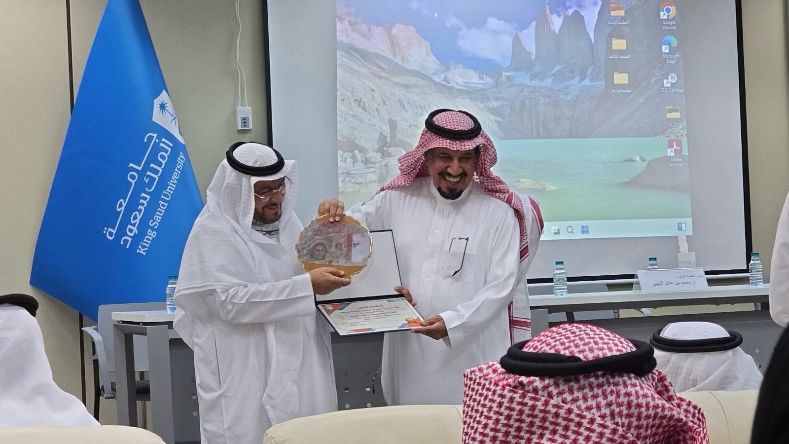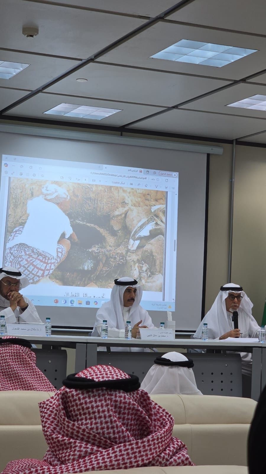 واستأنف الملتقى فعالياته بعقد الجلسة الافتتاحية والتي أدار جلسته الأستاذ الدكتور (محمد الذيبي) رئيس قسم الاثار، وقام بتقديم المشاركين في الجلسات.، وفي لفتة تقديرية لمسيرتهم العلمية وإسهاماتهم المتميزة كرم رئيس الجمعية السعودية للدراسات الأثرية عددًا من أعضاء هيئة التدريس المتخصصين في علم الآثار تقديرًا لعطائهم الأكاديمي وجهودهم في تأهيل كوادر وطنية متخصصة في الدراسات الاثرية وتأكيدًا على دورهم الفاعل في نقل المعرفة، والإشراف على مخرجات علمية رصينة لطلابهم الذين أصبحوا بدورهم ركيزة في خدمة التراث وهم: أ. د /عبد الله المنيف عميد كلية السياحة والاثار.وأ.د. مشلح المريخي؛ و أ.د. طلال الشعبان.