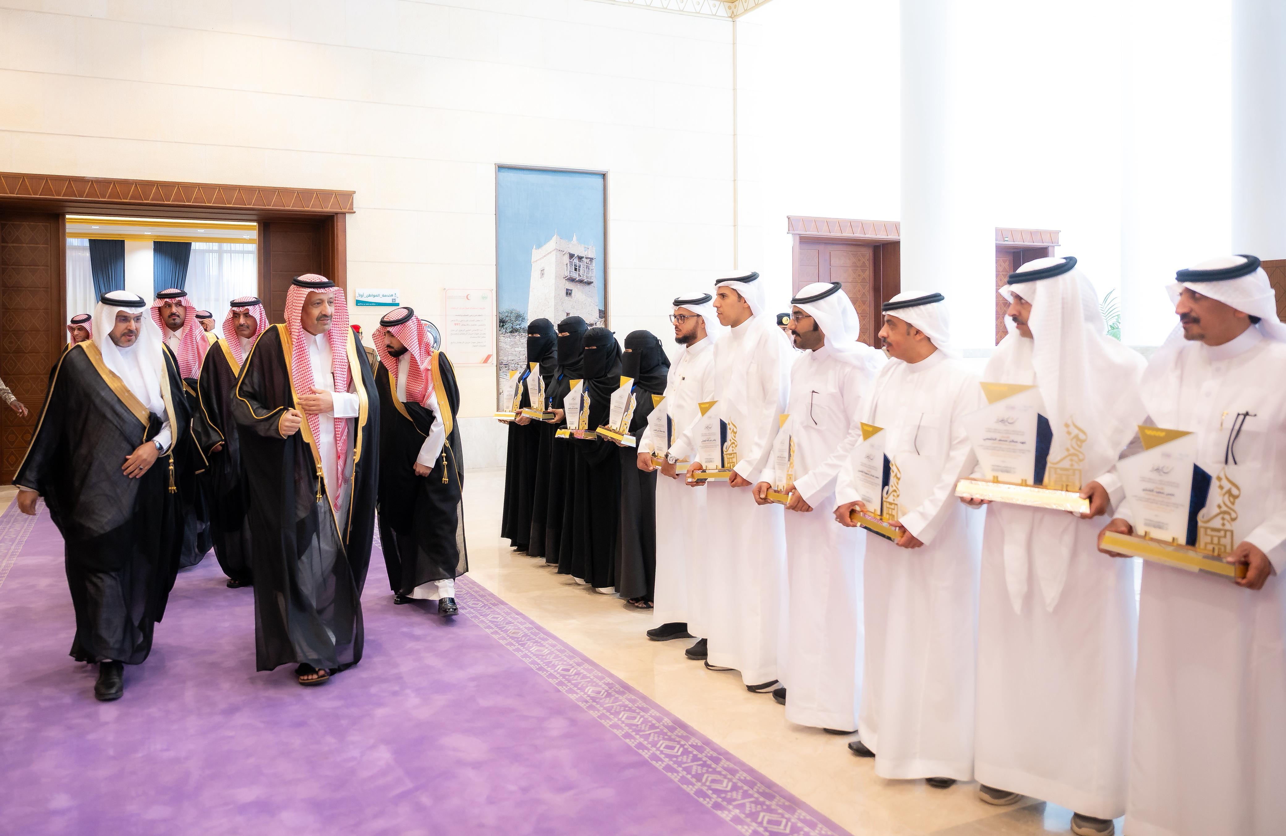 كرّم صاحب السمو الملكي الأمير الدكتور حسام بن سعود بن عبدالعزيز، أمير منطقة الباحة، (32) مدرسة تابعة للإدارة العامة للتعليم بالمنطقة، وذلك بمناسبة حصولها على مستوى التميز المدرسي على مستوى مدارس المملكة، وفق التصنيف الصادر من هيئة تقويم التعليم والتدريب.