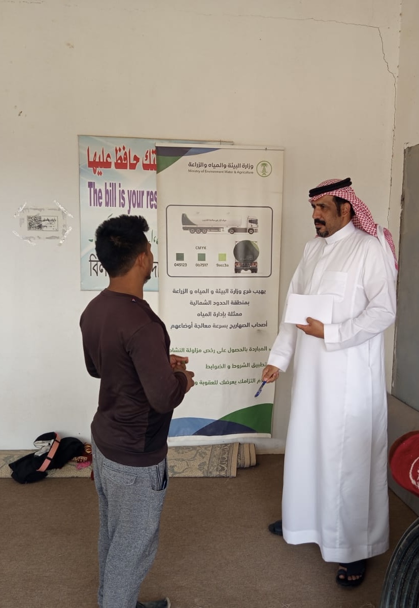 نفذ فرع وزارة البيئة والمياه والزراعة بمنطقة الحدود الشمالية، ممثلًا بإدارة المياه، عددًا من الجولات الرقابية الميدانية بمدينة عرعر، لمتابعة أشياب وصهاريج نقل وتوزيع المياه غير الصالحة للشرب، وذلك في إطار جهود الفرع لضمان الالتزام بالأنظمة والتعليمات الصادرة من الوزارة.