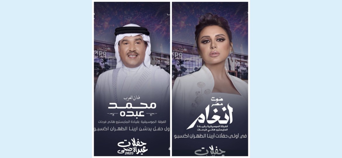 ضمن فعاليات عيد الأضحى المبارك لعام 2025، تستعد المنطقة الشرقية لانطلاق أولى حفلات “أرينا الظهران إكسبو”، وذلك بحضور اثنين من أبرز نجوم الفن العربي: فنان العرب محمد عبده، والفنانة المصرية المتألقة أنغام.