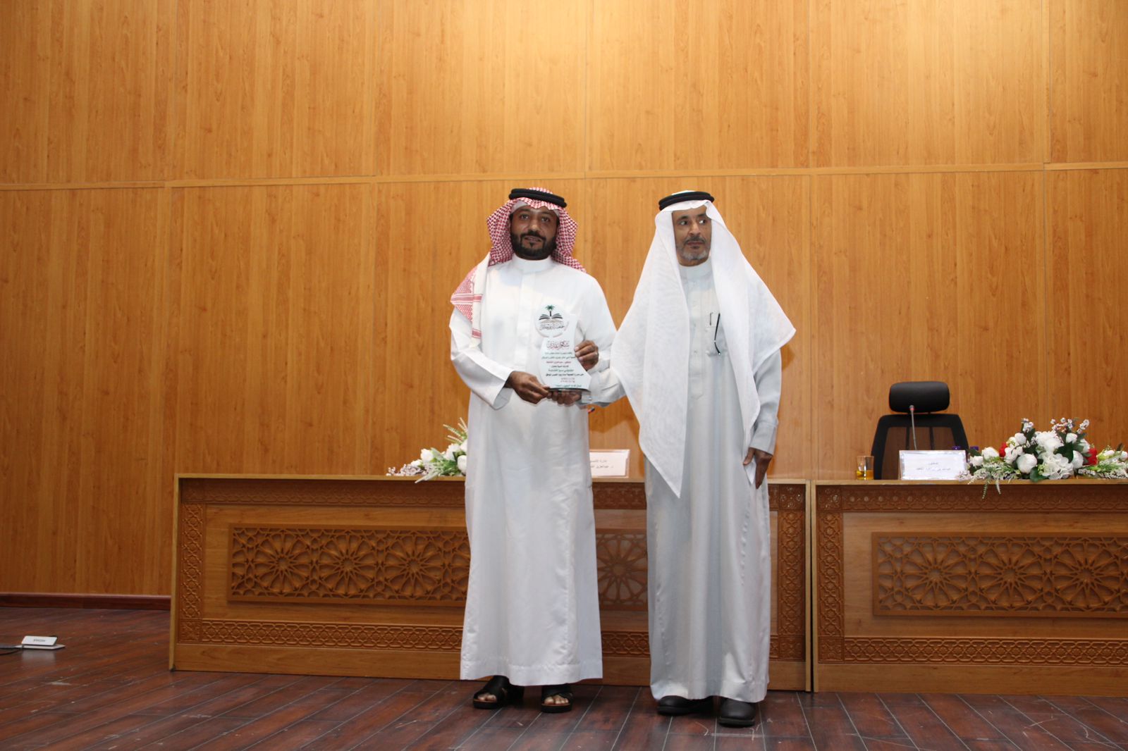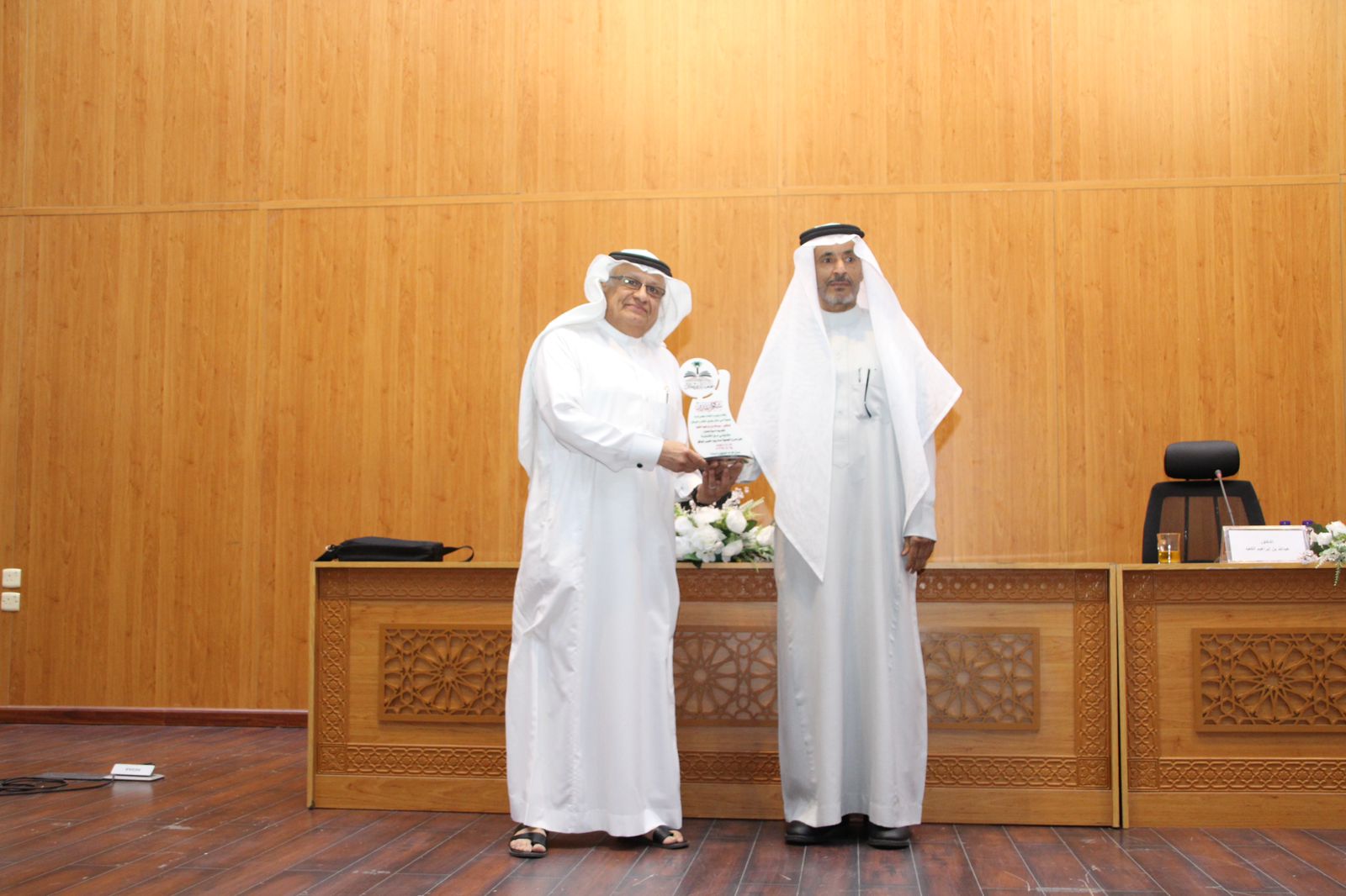 وفي نهاية الأمسية قدم رئيس الجمعية دروعًا تذكارية لمقدم الأمسية، ومديرها على حضورهما المميز والذي أثرى الحضور.