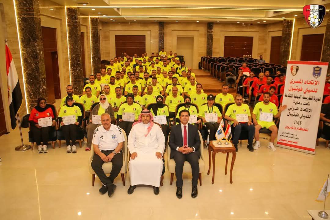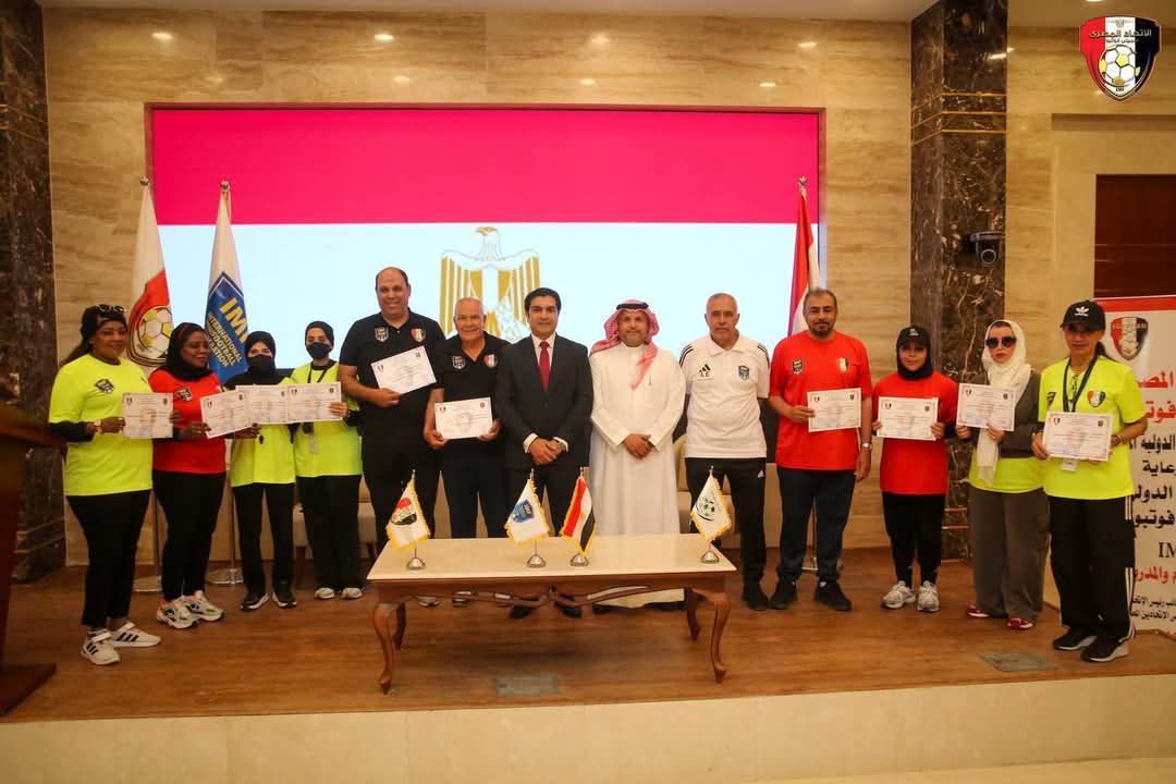 في أمسية رياضية كبرى، اختُتمت فعاليات الدورة التدريبية الدولية المتقدمة للحكام والمدربين لكرة القدم المصغرة، التي نظمها الاتحاد المصري للميني فوتبول تحت رعاية الاتحاد الدولي للعبة IMF، خلال الفترة من 15 إلى 17 مايو الجاري، وذلك في قاعة المؤتمرات الكبرى بالمدينة الرياضية (معسكر القرش) بمحافظة الإسماعيلية.