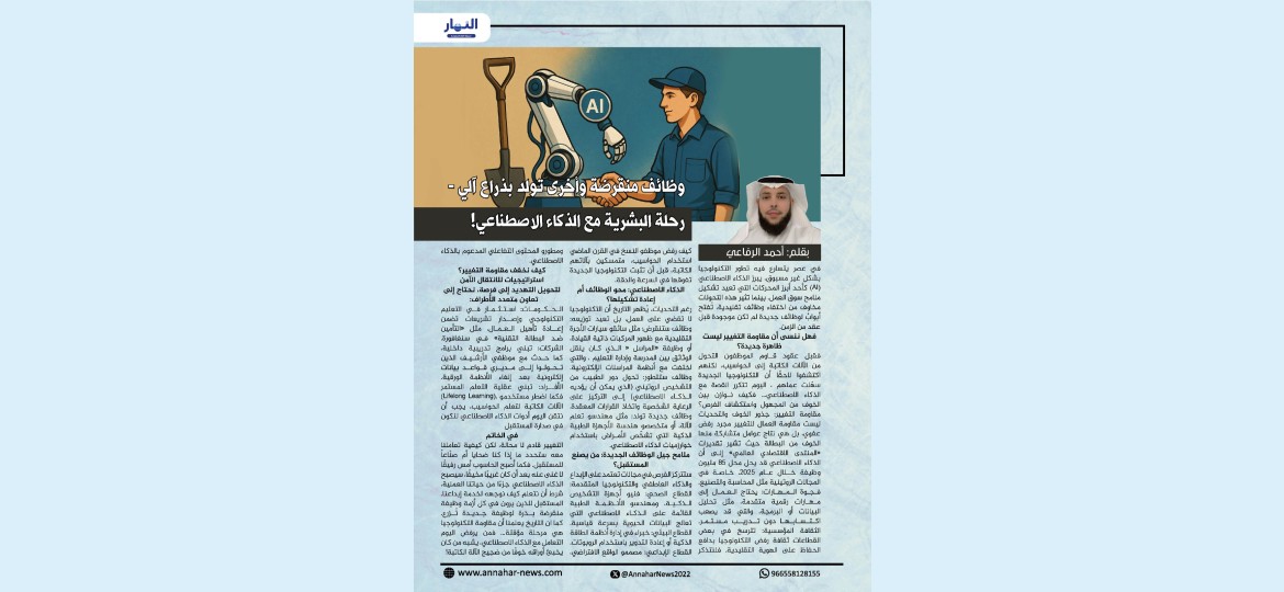 التغيير قادم لا محالة، لكن كيفية تعاملنا معه ستحدد ما إذا كنا ضحايا أم صنّاعاً للمستقبل. فكما أصبح الحاسوب أمس رفيقًا لا غنى عنه بعد أن كان غريبًا مخيفًا، سيصبح الذكاء الاصطناعي جزءًا من حياتنا العملية، شرط أن نتعلم كيف نوجهه لخدمة إبداعنا.