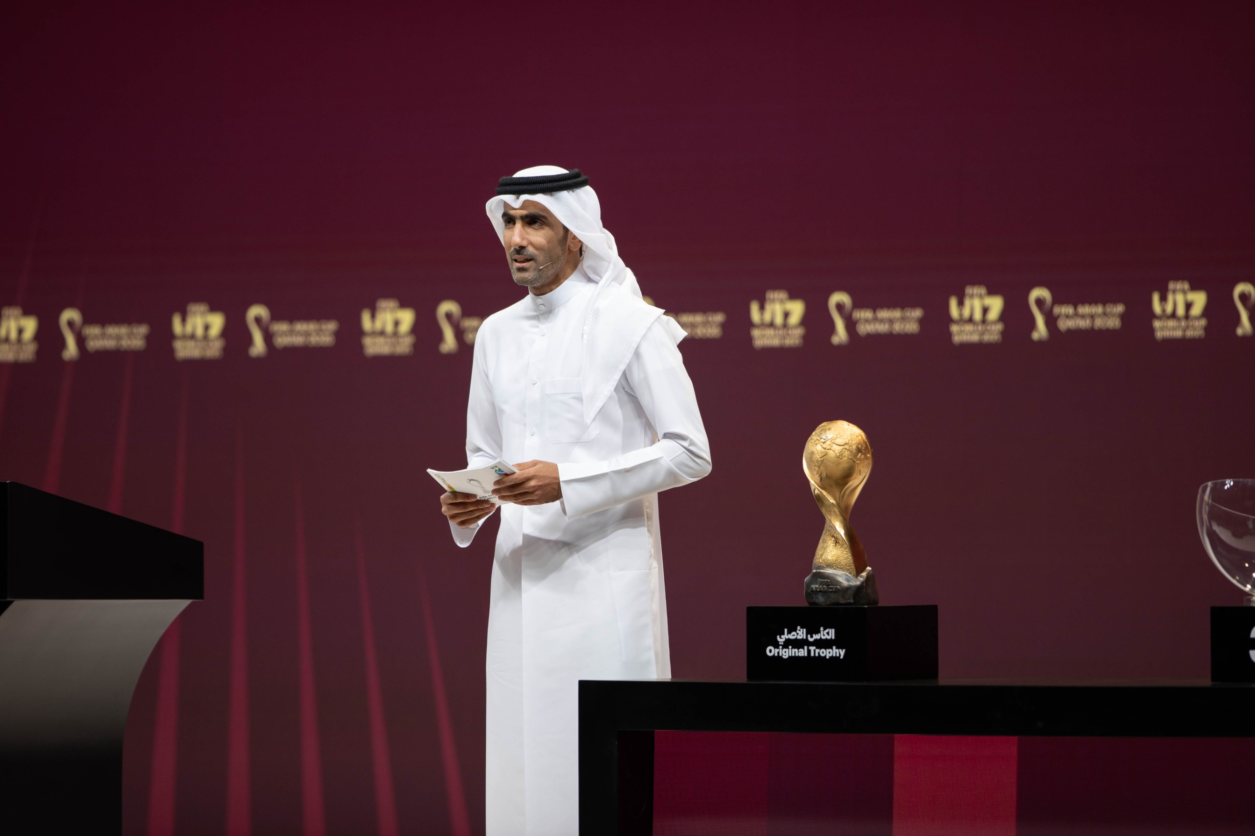 وتولى المذيع القطري محمد سعدون الكواري تقديم فقرات حفل القرعة، التي أشرف على إجراءاتها خايمي يارزا مدير البطولات بـ FIFA، حيث ساعده في عملية السحب كل من حسن الهيدوس ورابح ماجر وياسر القحطاني ووائل جمعة.