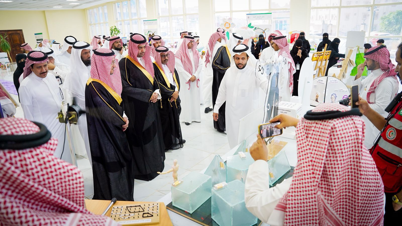 وتجول وكيل الإمارة ووكيل وزارة التعليم في المعرض المصاحب المقام بهذه المناسبة، وشاهدوا ما يضمه من معروضات تمثل مشاركات ومبادرات مدارس المنطقة وإسهاماتها في الرقي بتدريس الصفوف الأولية.