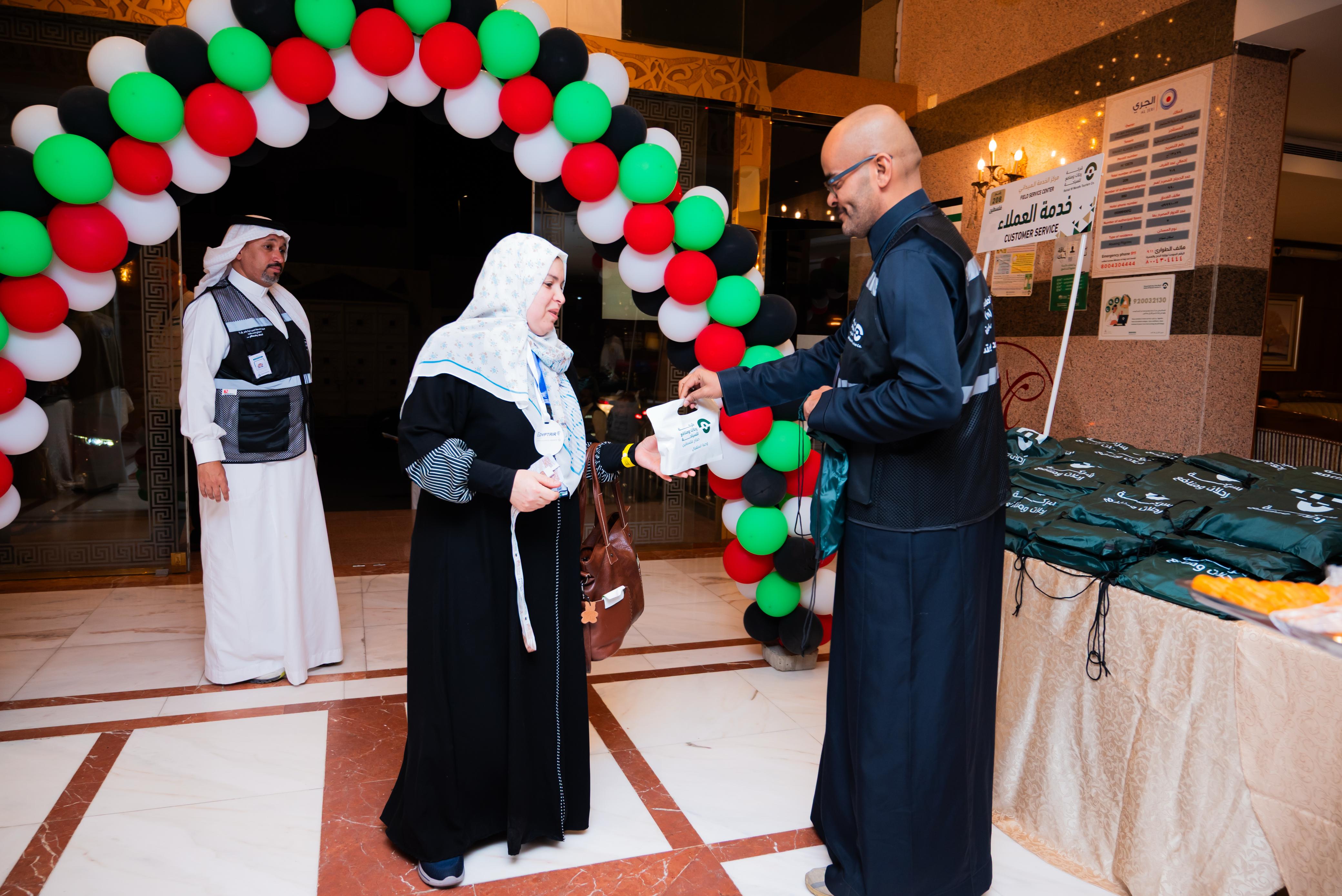 واستقبلت مطوفي حجاج الدول العربية (أشرقت) ممثلةً ب (برحلات ومنافع ) عبر مركزي الخدمة الميدانية (206) و (207) و 208 الحجاج بالترحاب وتقديم ماء زمزم والتمر والقهوة والفواكه والورود والهدايا.