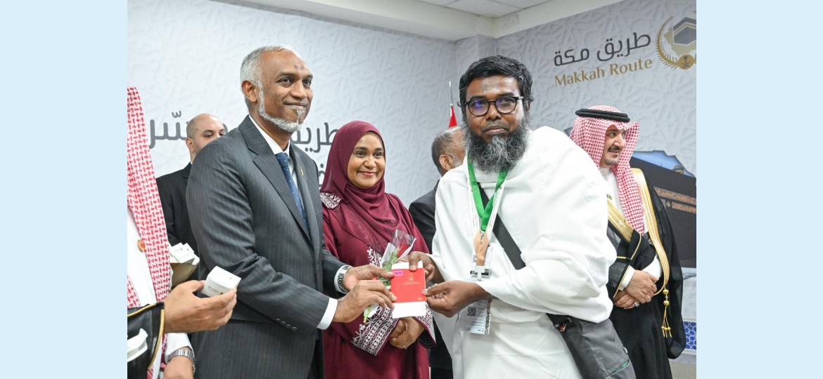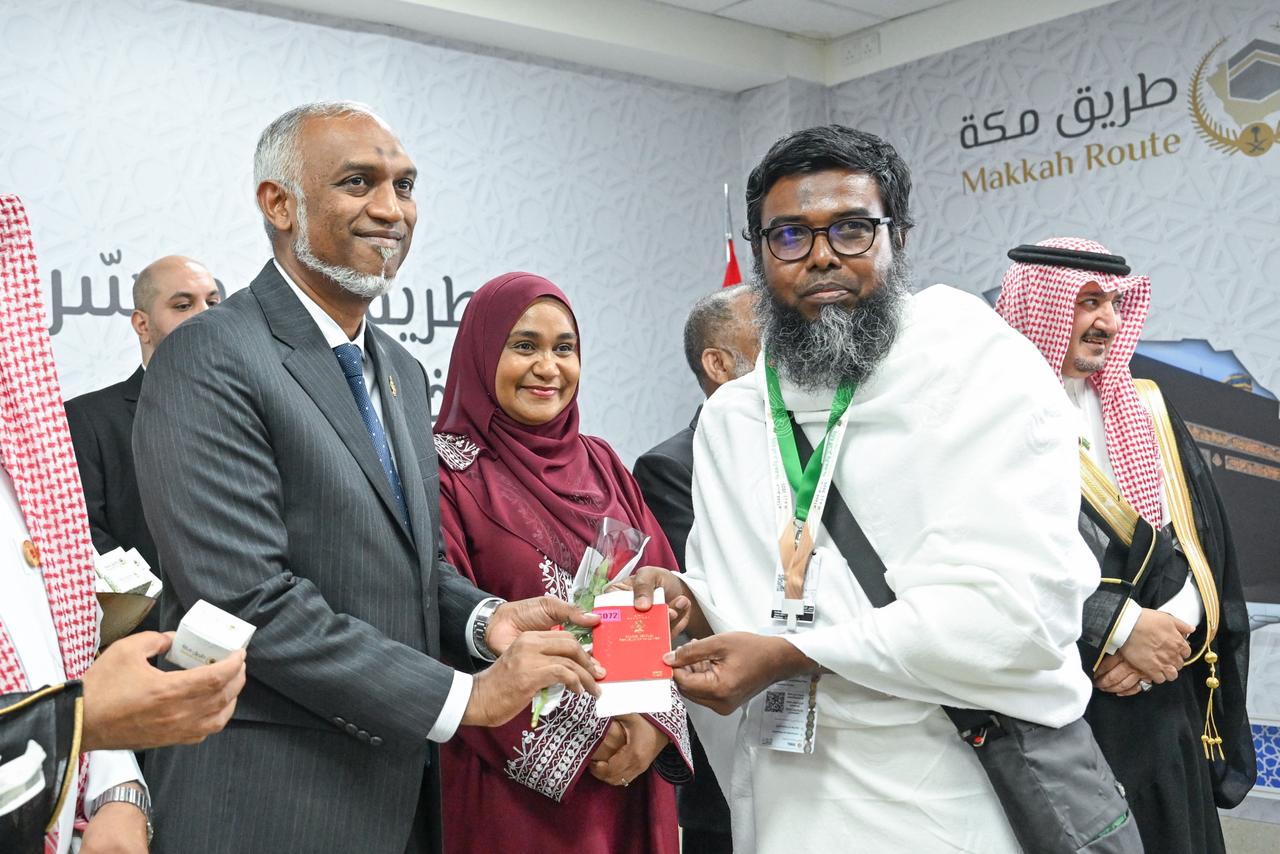 وشهد رئيس دولة المالديف الدكتور محمد معز أثناء تدشين مبادرة طريق مكة توديع أول فوج من حجاج المالديف بعد تسلمهم بطاقات نسك قبل مغادرتهم البلاد لأداء نسك الحج .