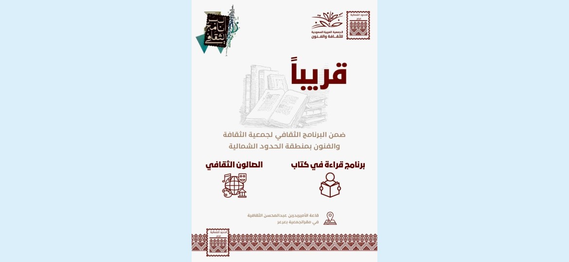 أعلنت الجمعية الثقافة والفنون بمنطقة الحدود الشمالية عن إطلاق برنامجي الصالون الثقافي وقراءة في كتاب، وذلك ضمن برامجها الثقافية المستمرة.